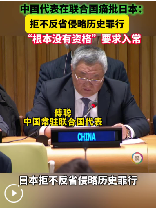 傅聰強調,日本拒不反省侵略歷史罪行,公然踐踏戰后國際秩序,干涉別國主權,為地區和平穩定帶來新的威脅。這樣的國家根本沒有資格要求成為安理會常任理事國。(記者:潘云召、謝鍔;視頻:張淼)