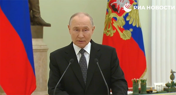 2月23日是俄羅斯祖國保衛者日,普京也在頒獎儀式上感謝了俄羅斯武裝力量。他說:“值此節日之際,我們向所有在‘特別軍事行動’區域履行職責的軍人致敬。他們以冒著生命危險的精神、勇氣與毅力,以對俄羅斯、對我們人民的熱愛,保衛國家邊界,維護戰略平衡。”