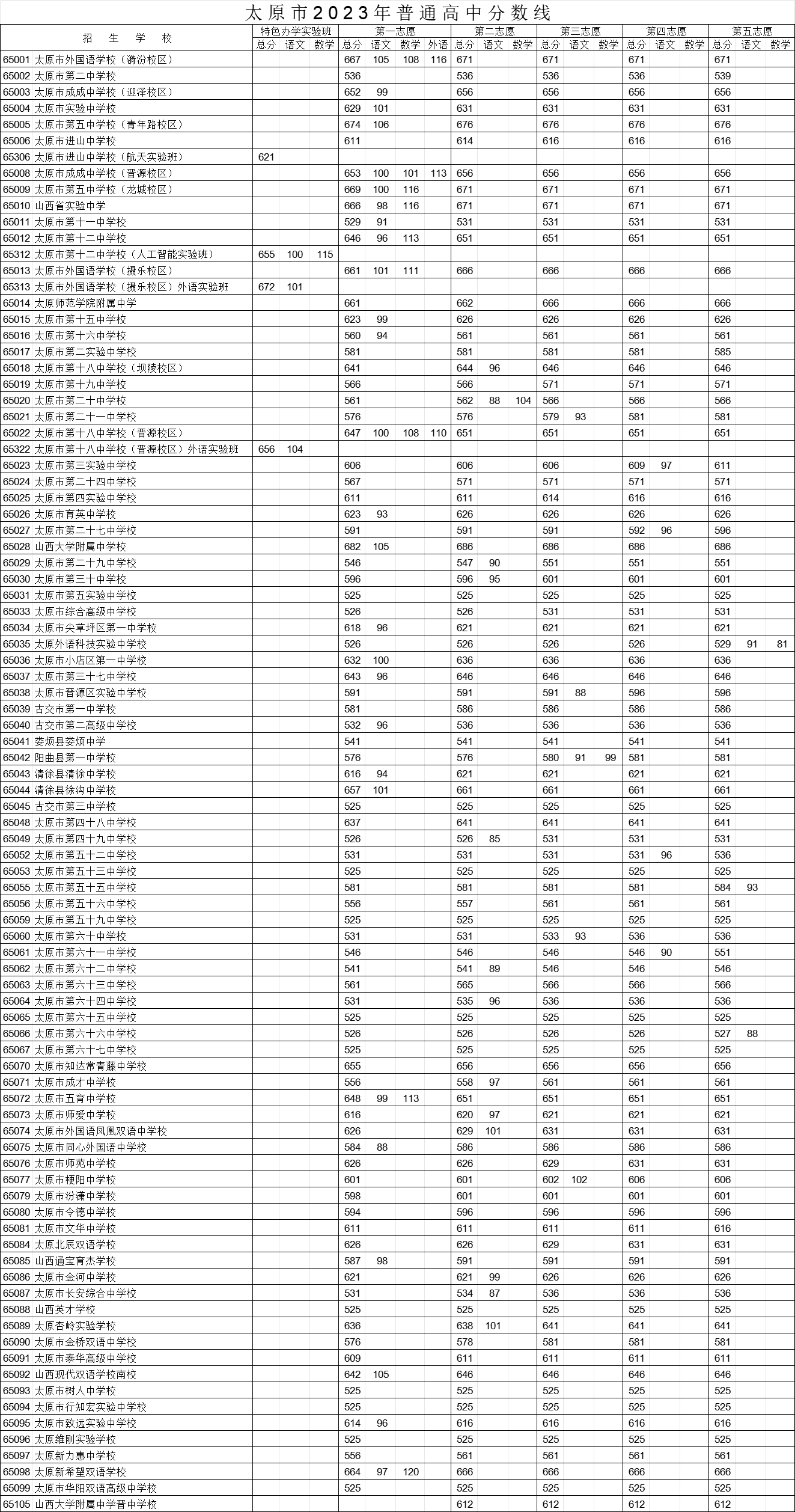 太原市進山中學校航天實驗班、太原市第十二中學校人工智能實驗班、太原市外國語學校(攝樂校區)外語實驗班、太原市第十八中學校(晉源校區)外語實驗班,分數線控制在中考總分85%(2023年為621分)的基礎上,按計劃、按分數、按志愿擇優錄取;進山中學初中航天實驗班在籍考生填報本校航天實驗班志愿,在全市普通高中最低錄取控制線上按招生計劃優先擇優錄取。