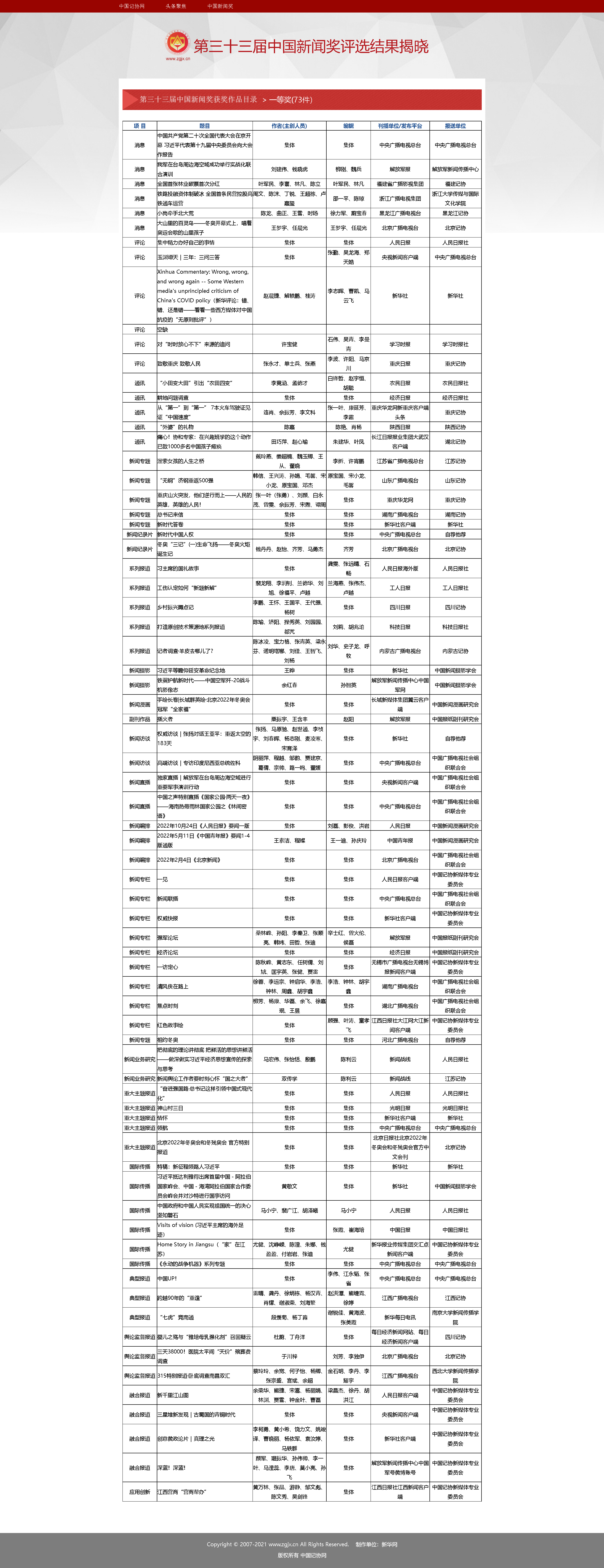 第33屆中國(guó)新聞獎(jiǎng)獲獎(jiǎng)作品目錄