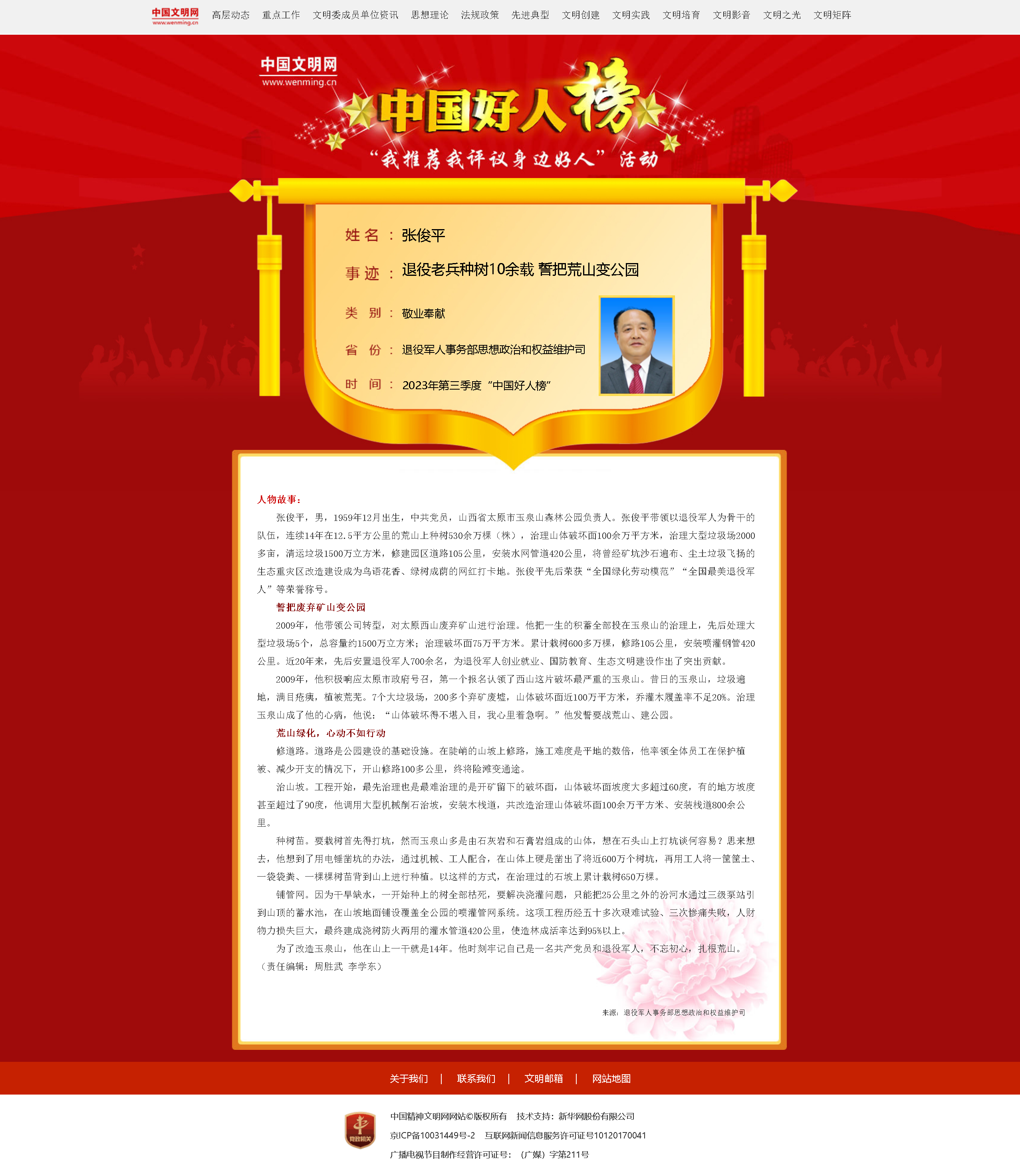 自2008年4月起,中央精神文明建設(shè)辦公室已連續(xù)15年組織開展網(wǎng)上“我推薦我評(píng)議身邊好人”活動(dòng),定期發(fā)布“中國好人榜”,舉辦“全國道德模范與身邊好人現(xiàn)場交流活動(dòng)”。截至目前,共有近1.7萬人(組)入選“中國好人榜”,參與互動(dòng)人次超過100億,在全社會(huì)營造了學(xué)習(xí)中國好人、爭當(dāng)時(shí)代新人的濃厚氛圍。