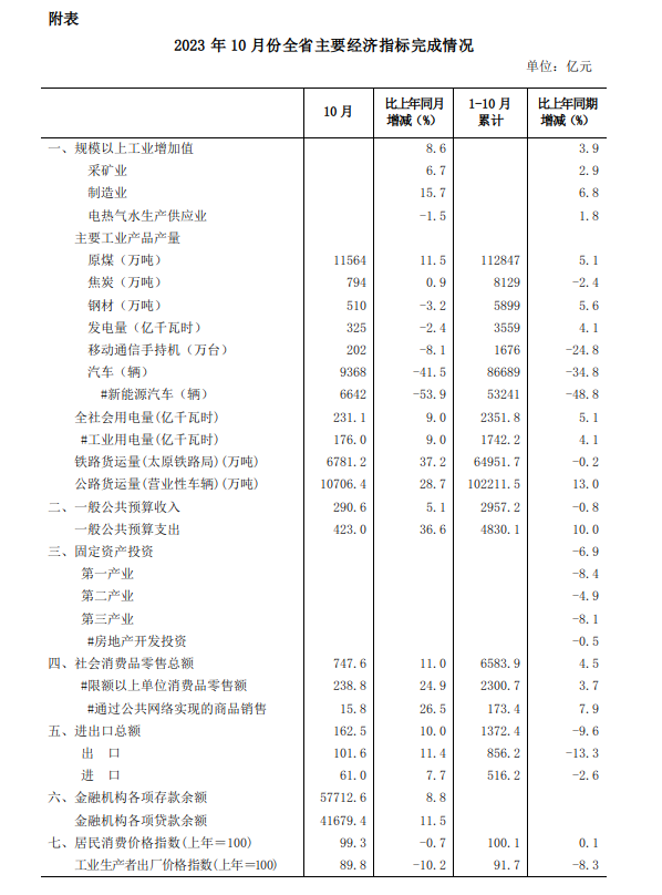 能源保供扎實推進。全省持續(xù)加大生產(chǎn)力度,實現(xiàn)了煤、氣、電持續(xù)安全穩(wěn)定供應(yīng)。全省規(guī)上原煤產(chǎn)量112846.5萬噸,增長5.1%;規(guī)上非常規(guī)天然氣產(chǎn)量增長9.4%;發(fā)電量增長4.1%,其中外送電量增長8.4%。