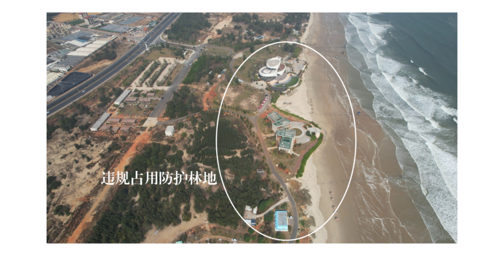 2023年11月24日,督察組現(xiàn)場督察發(fā)現(xiàn),漳浦縣七星海旅游度假區(qū)違規(guī)占用防護(hù)林地。(督察組供圖)
