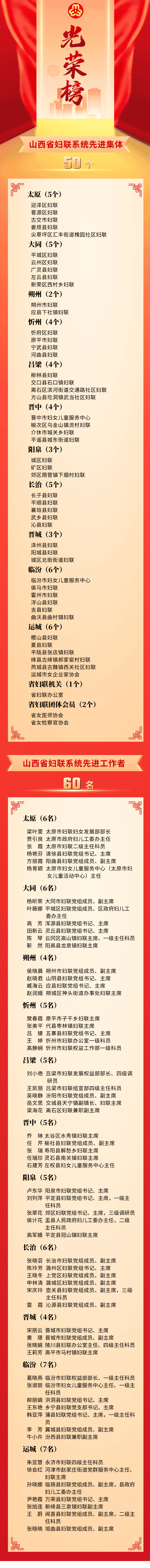 祝賀!山西省婦聯系統先進集體(先進工作者)名單揭曉