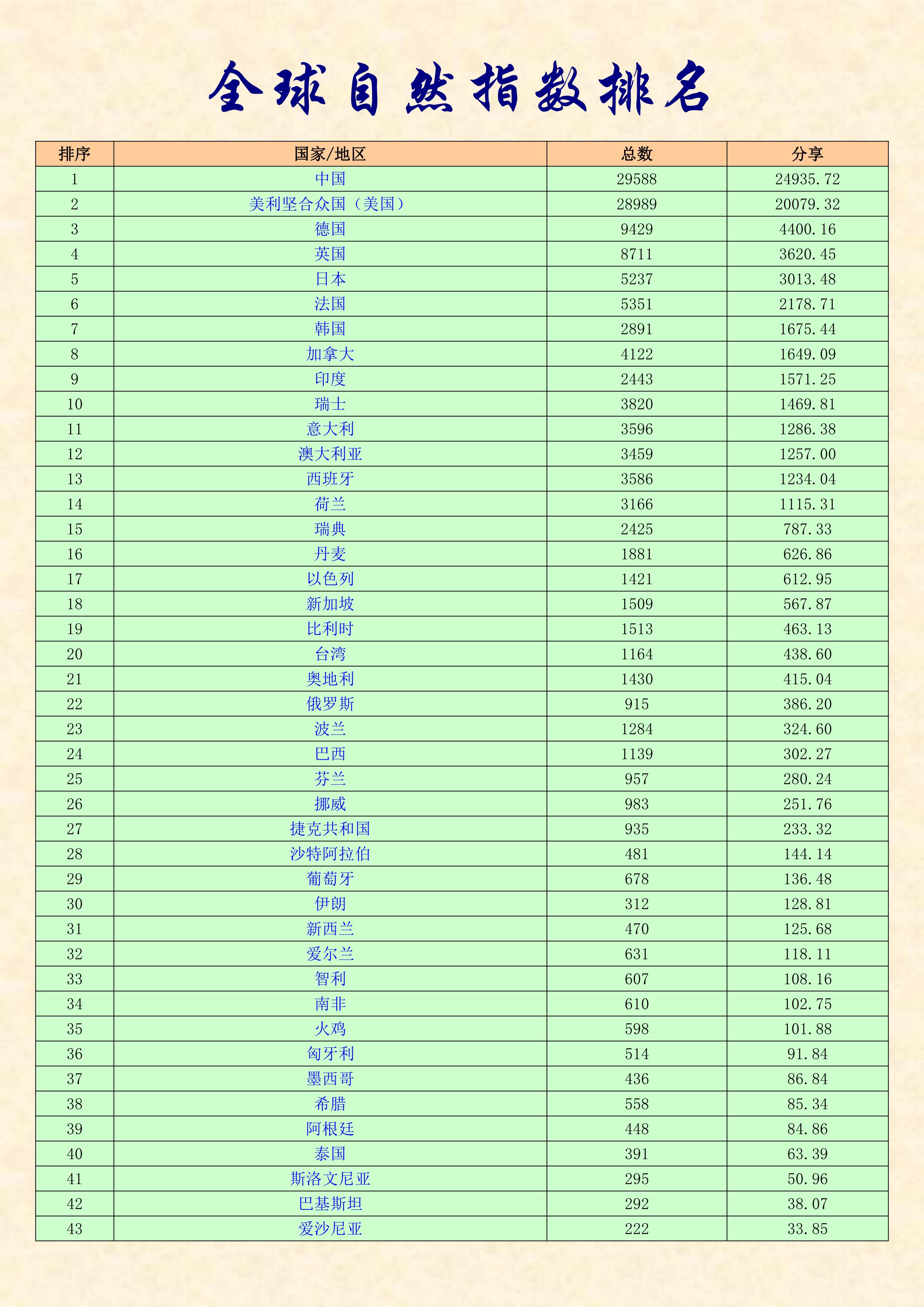 自然指數(Nature Index)于2014年11月首次發布,是依托于全球100多種頂級期刊(2014年11月開始選定68種,2018年6月改為82種 ,2023年收錄期刊總數增至145種),統計各高校、科研院所(國家)在國際上最具影響力的研究型學術期刊上發表論文數量的數據庫。運用這個數據庫,可以根據各機構的論文發表數量及類別來進行排名和期刊索引,這一數據庫的實時在線版免費為公眾開放。自然指數已發展成為國際公認的、能夠衡量機構、國家和地區在自然科學領域的高質量研究產出與合作情況的重要指標,在全球范圍內有很大影響力。