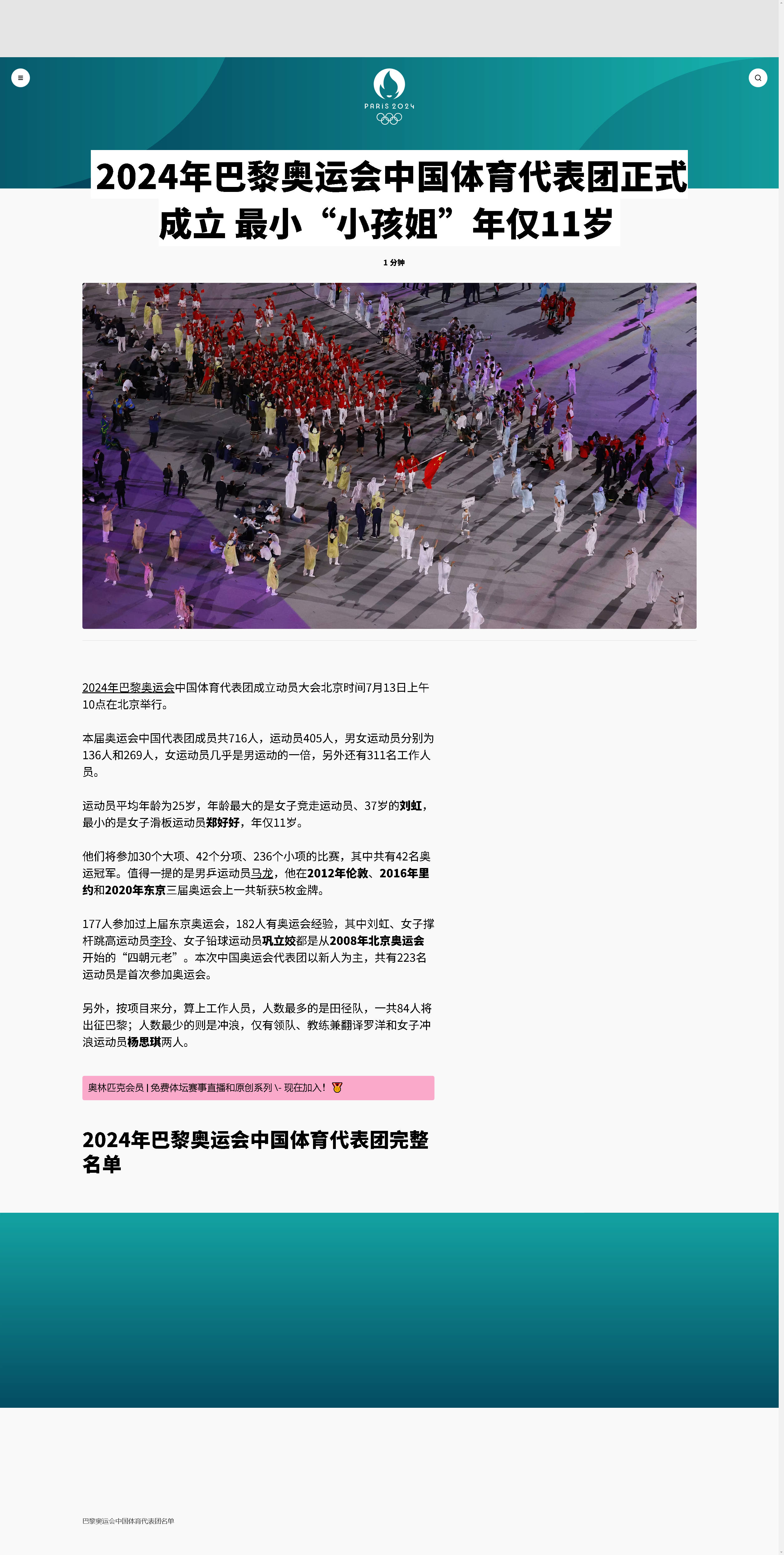 2024年巴黎奧運會中國體育代表團成立動員大會北京時間7月13日上午10點在北京舉行。