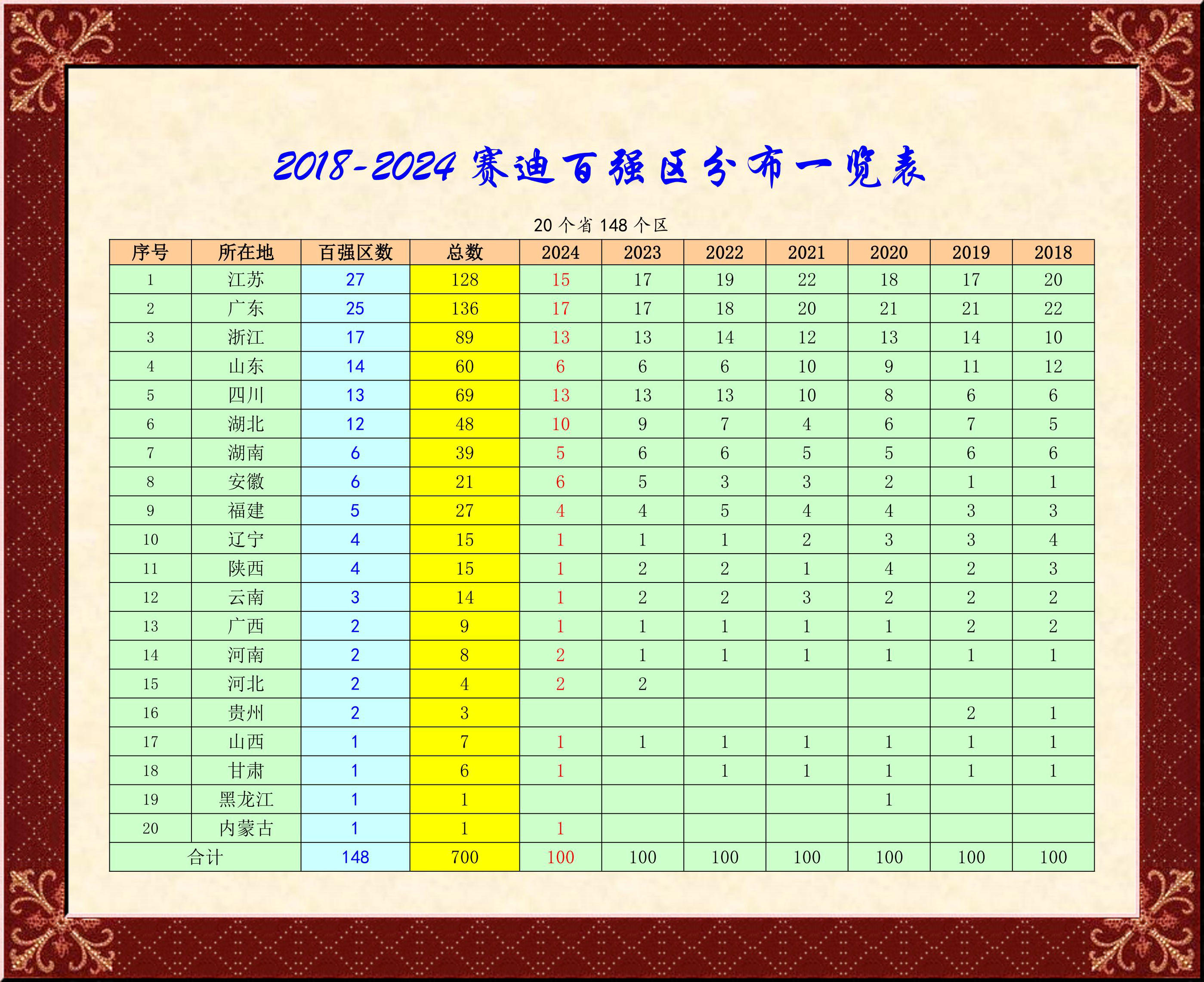 總序號 城區 年度 排名 所在城市 所屬省、自治區