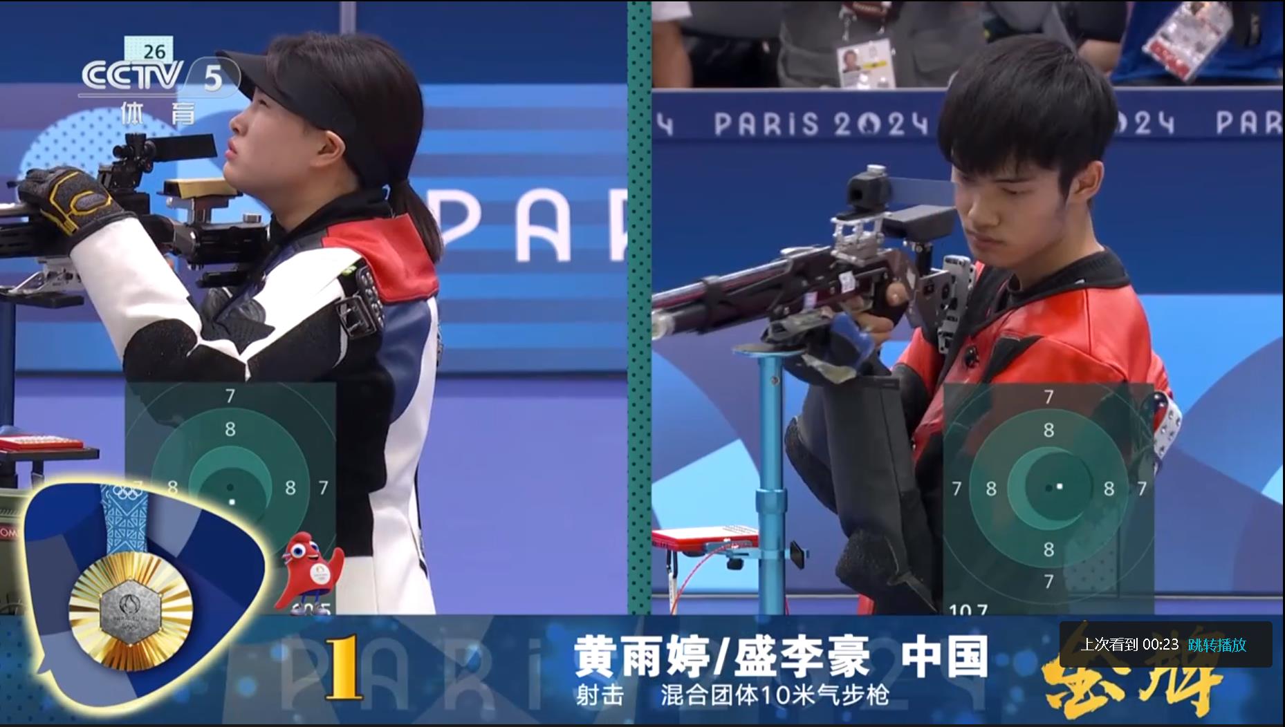 第1金 黃雨婷/盛李豪 射擊10米氣步槍混合團體