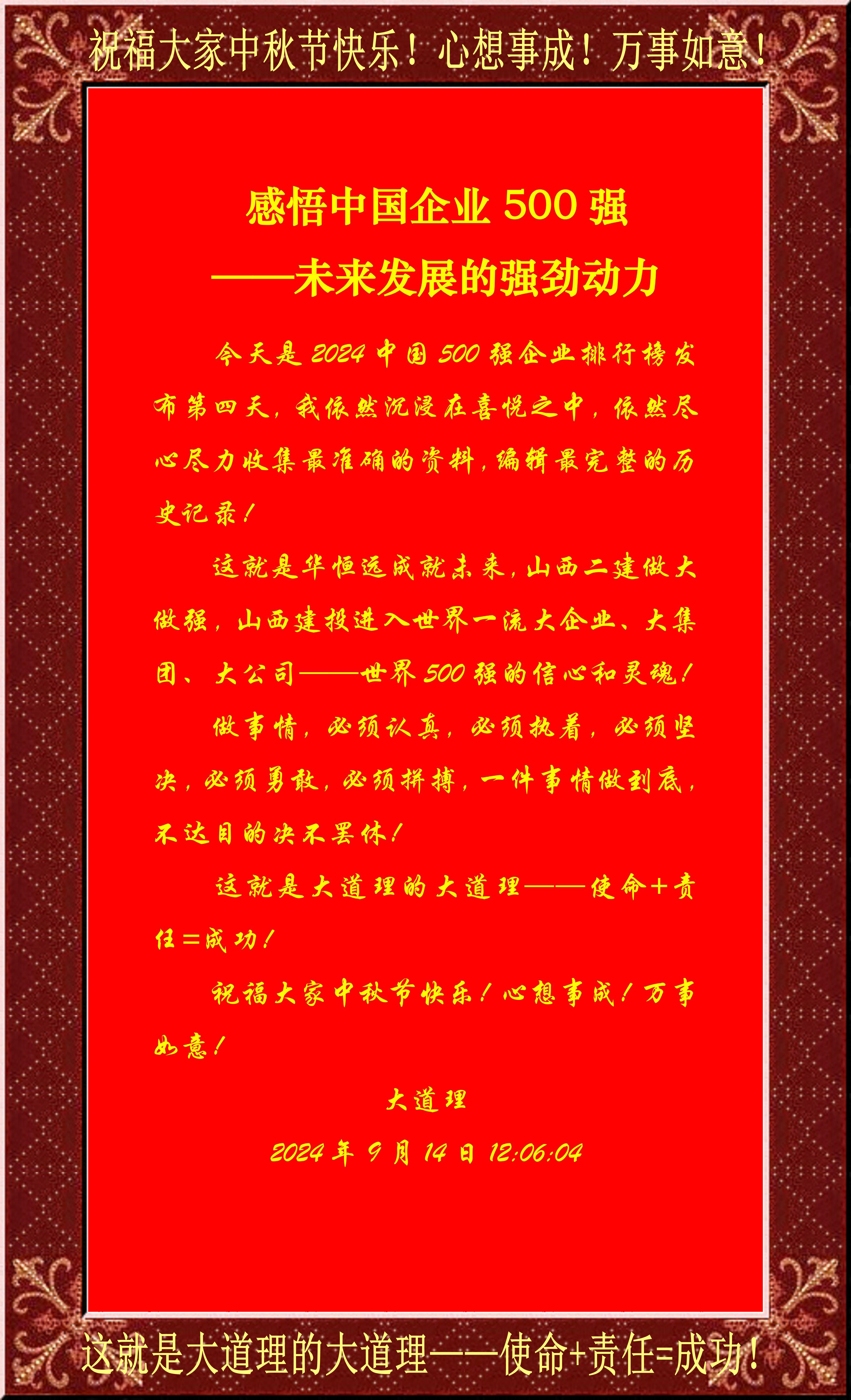 今天是2024中國500強企業排行榜發布第四天,我依然沉浸在喜悅之中,依然盡心盡力收集最準確的資料,編輯最完整的歷史記錄!