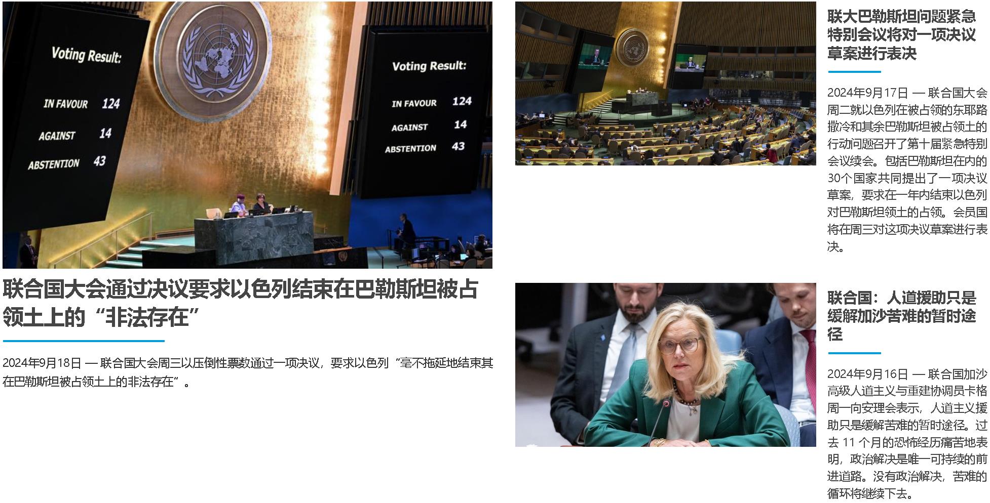 新華社聯合國9月18日電(記者潘云召)第十次聯合國大會緊急特別會議18日以壓倒性票數通過決議,要求以色列在未來12個月內結束對巴勒斯坦領土的非法占領。