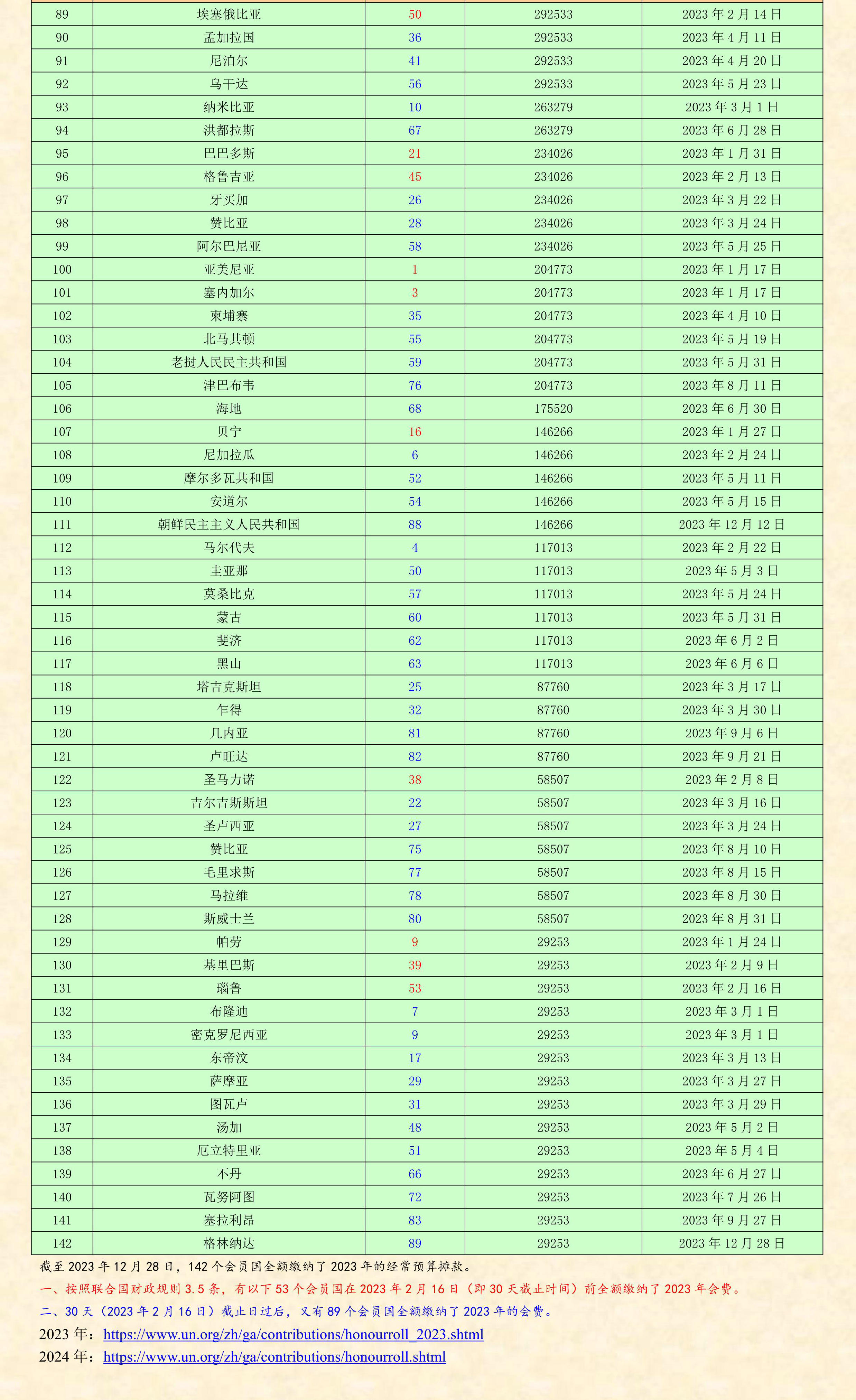 查閱去年聯合國會員國會費繳納情況