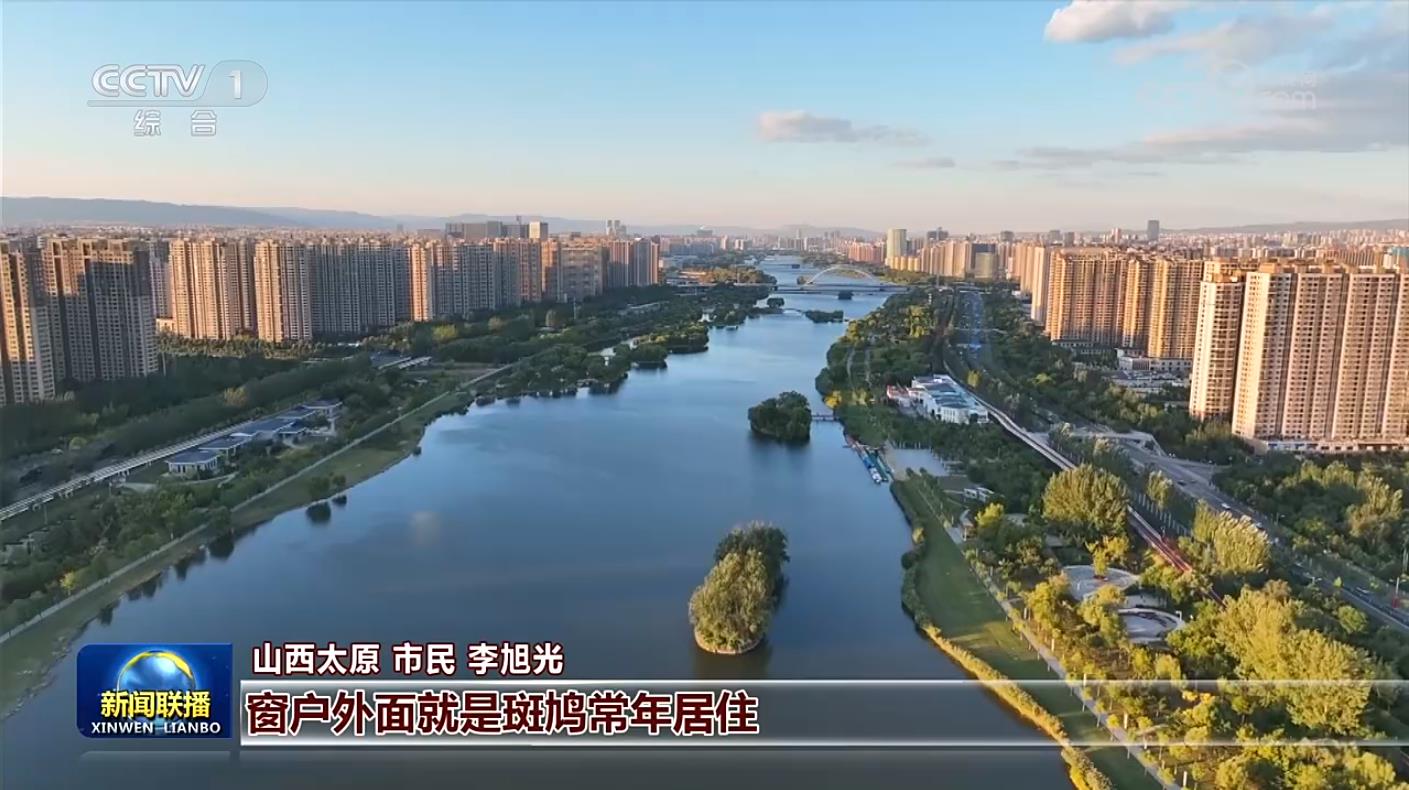 節目中,太原市民李旭光說:“太原的綠地發展是城市發展最好的見證,一條馬路兩行樹,中間都栽的小灌木。我們小的時候打煤糕,去西山拉煤,現在哪還有啊,城市已經實現了煤氣化,眼下又開始進行城市污水、雨水分離設施的改造,這就凈化了汾河兩岸。汾河里可以看到白鷺、蒼鷺、赤麻鴨等多種鳥類,老百姓家的窗戶外面就有斑鳩常年居住,都可以產蛋了,這在以前是很少見到的。”
