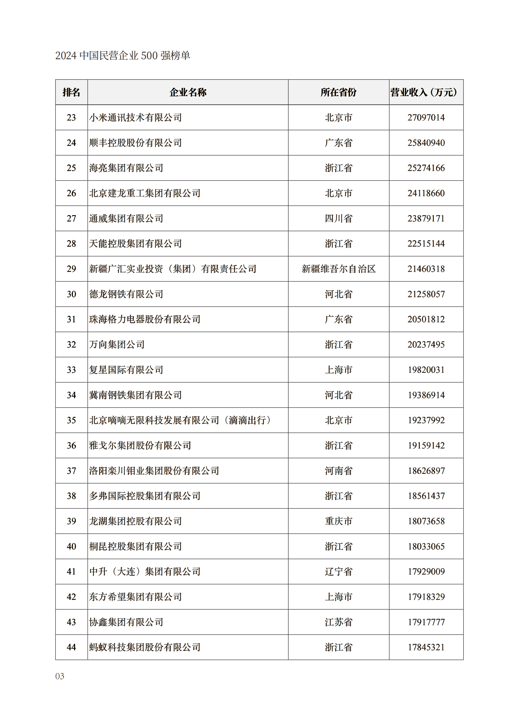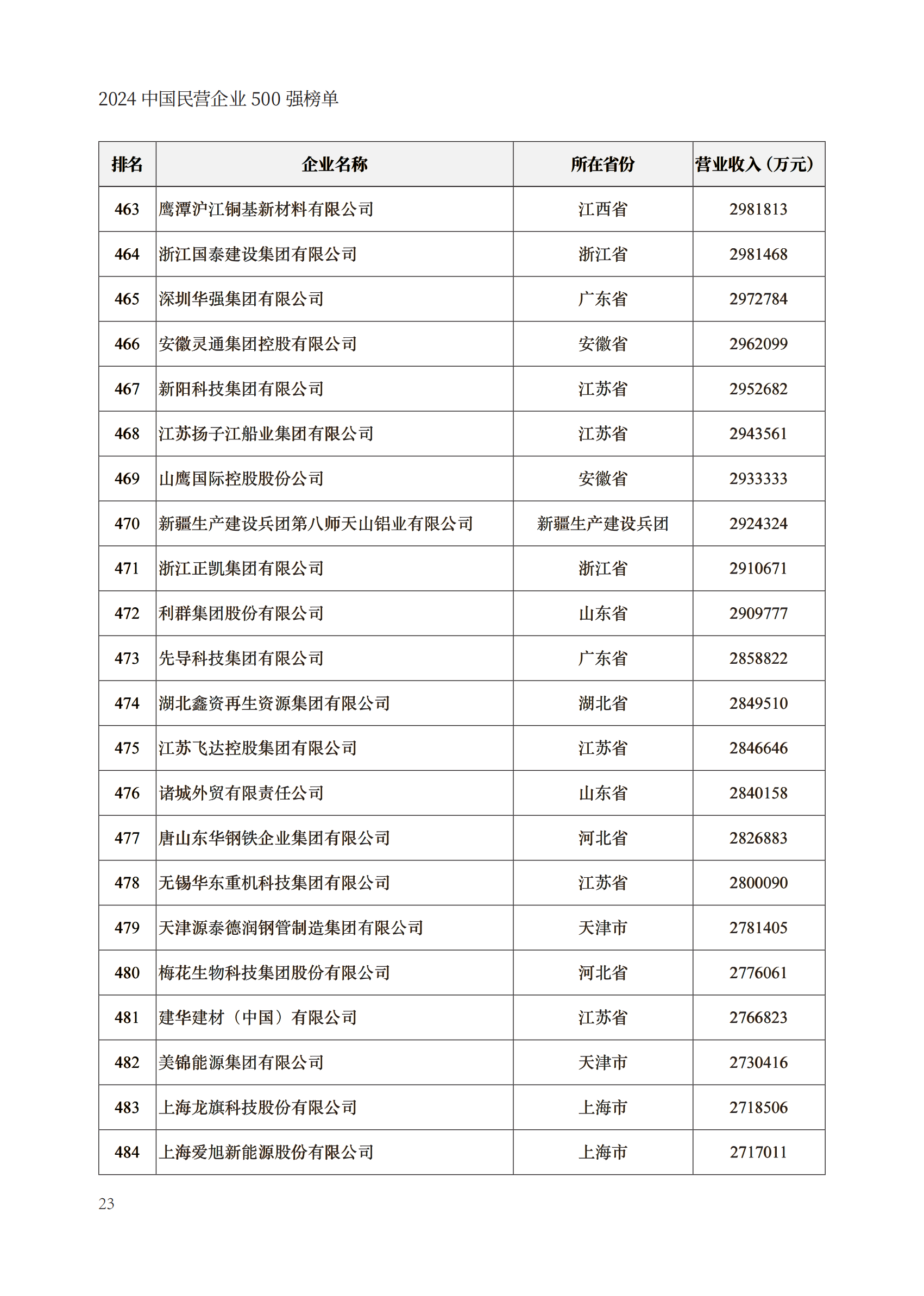 【行業動態】2024中國民營企業500強 制造業民營企業500強 服務業民營企業100強
