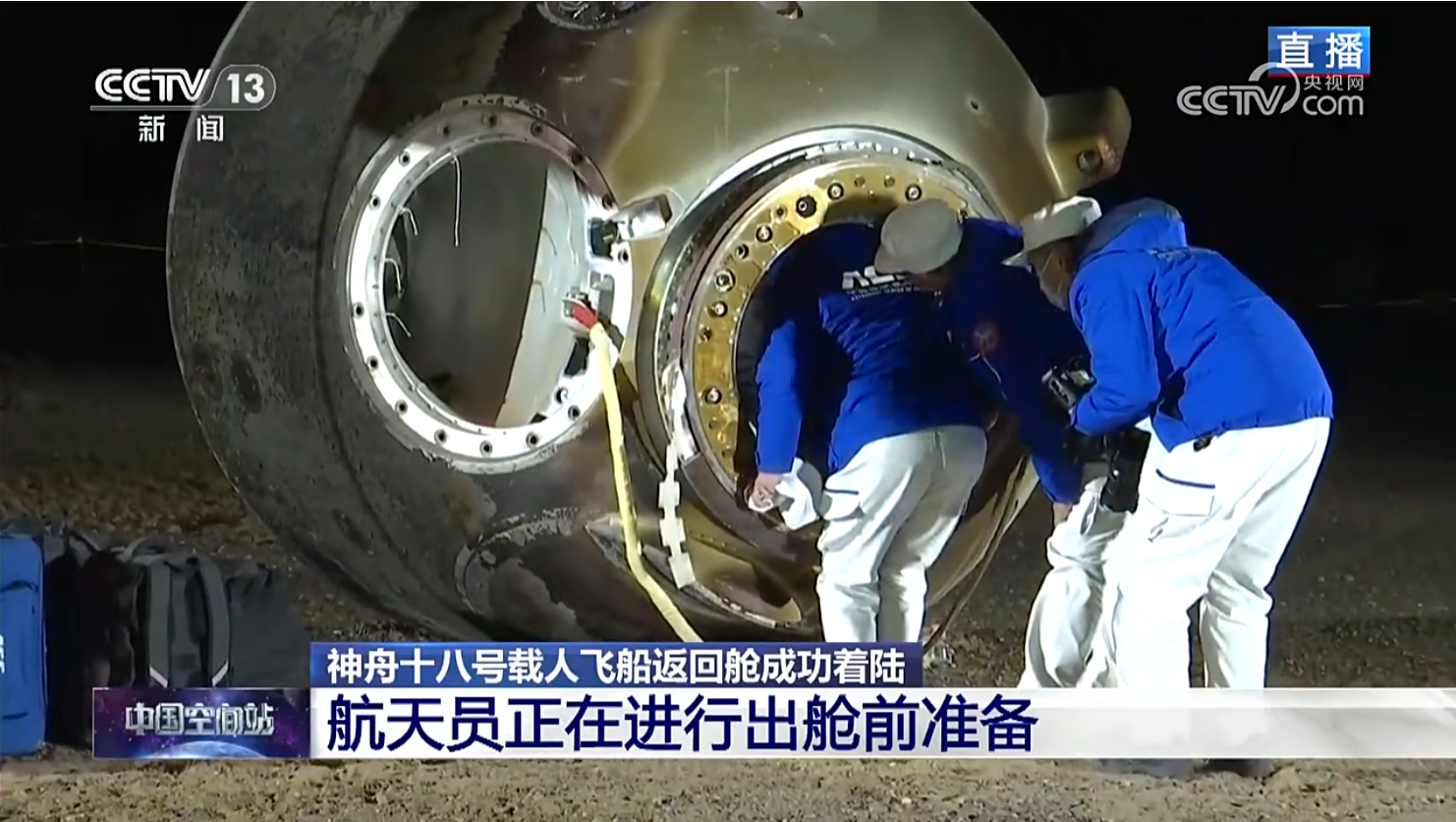 【時政要聞】神舟十八號載人飛船返回艙在東風著陸場成功著陸