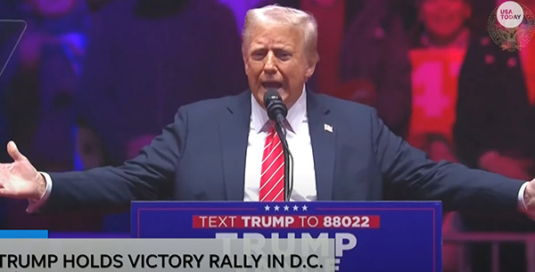 當地時間1月19日,美國候任總統特朗普在華盛頓市中心舉行集會。 視頻截圖