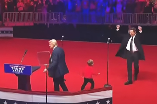 馬斯克帶著他的兒子X ? A-12參加特朗普集會。 視頻截圖