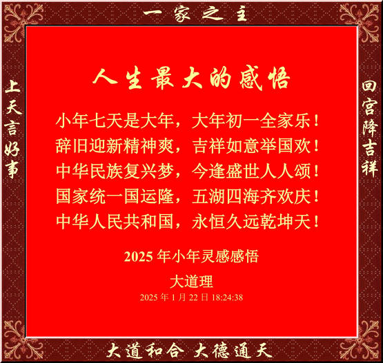 只要你真正達到上天的高度,自然理解我的預言無懈可擊!什么是大智慧?能夠決定一切事物而不進入事物!什么是大格局?能夠左右一切事物而不參與事物!什么是大境界?能夠成就一切事物而不收納事物!天人合一,大道和合,大德通天,大道至簡,大象無形——上天(大自然)的必然和自然規(guī)律!
