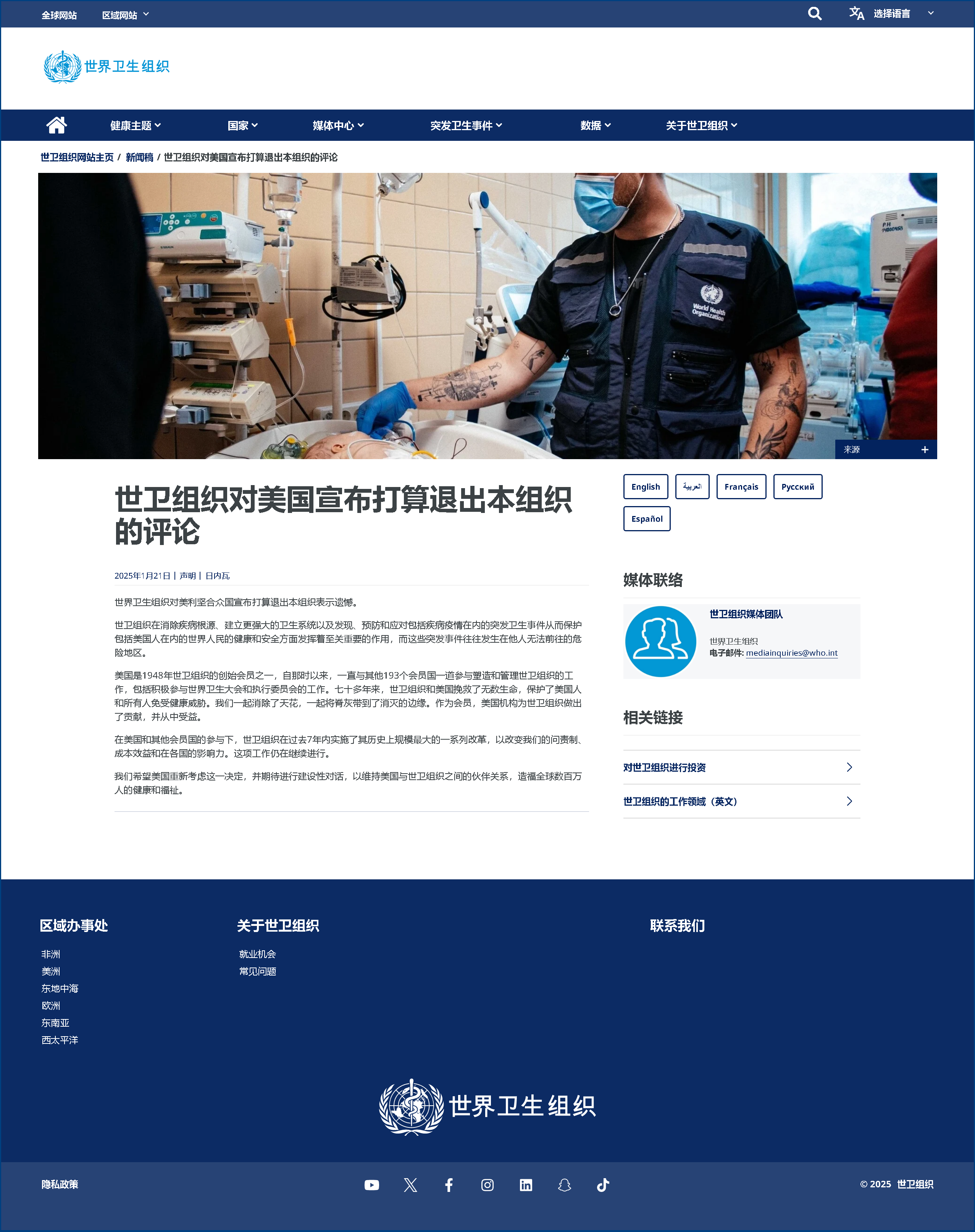在特朗普上一個總統(tǒng)任期,美國政府2020年7月6日正式通知聯(lián)合國,稱美國將于2021年7月6日退出世衛(wèi)組織。2021年1月20日,拜登政府上臺首日宣布美國停止退出世衛(wèi)組織。