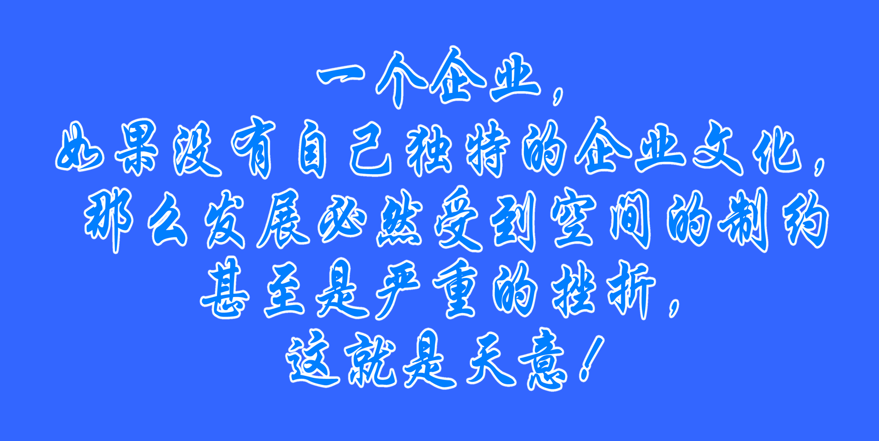 一個企業,如果沒有自己獨特的企業文化,那么發展必然受到空間的制約甚至是嚴重的挫折,這就是天意!