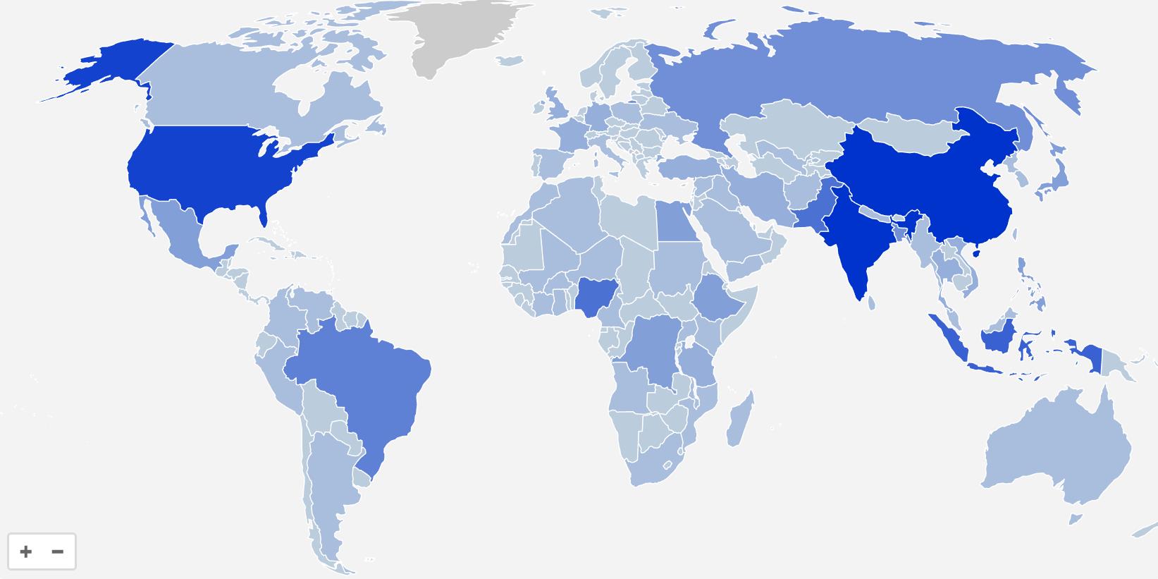 孟加拉國 | 174 406 643 | 2.11% |