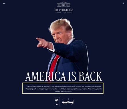 今天,白宮網(wǎng)站網(wǎng)頭悄悄地撤換特朗普的標志性肖像圖片,把指手改成了畫腳!而美國回來了下面“每一天我都會用我的每一次呼吸為你而戰(zhàn)。我不會休息,直到我們建成一個強大、安全和繁榮的美國,這是我們的孩子和你們應得的。這將真正成為美國的黃金時代”的配文也不見了!
