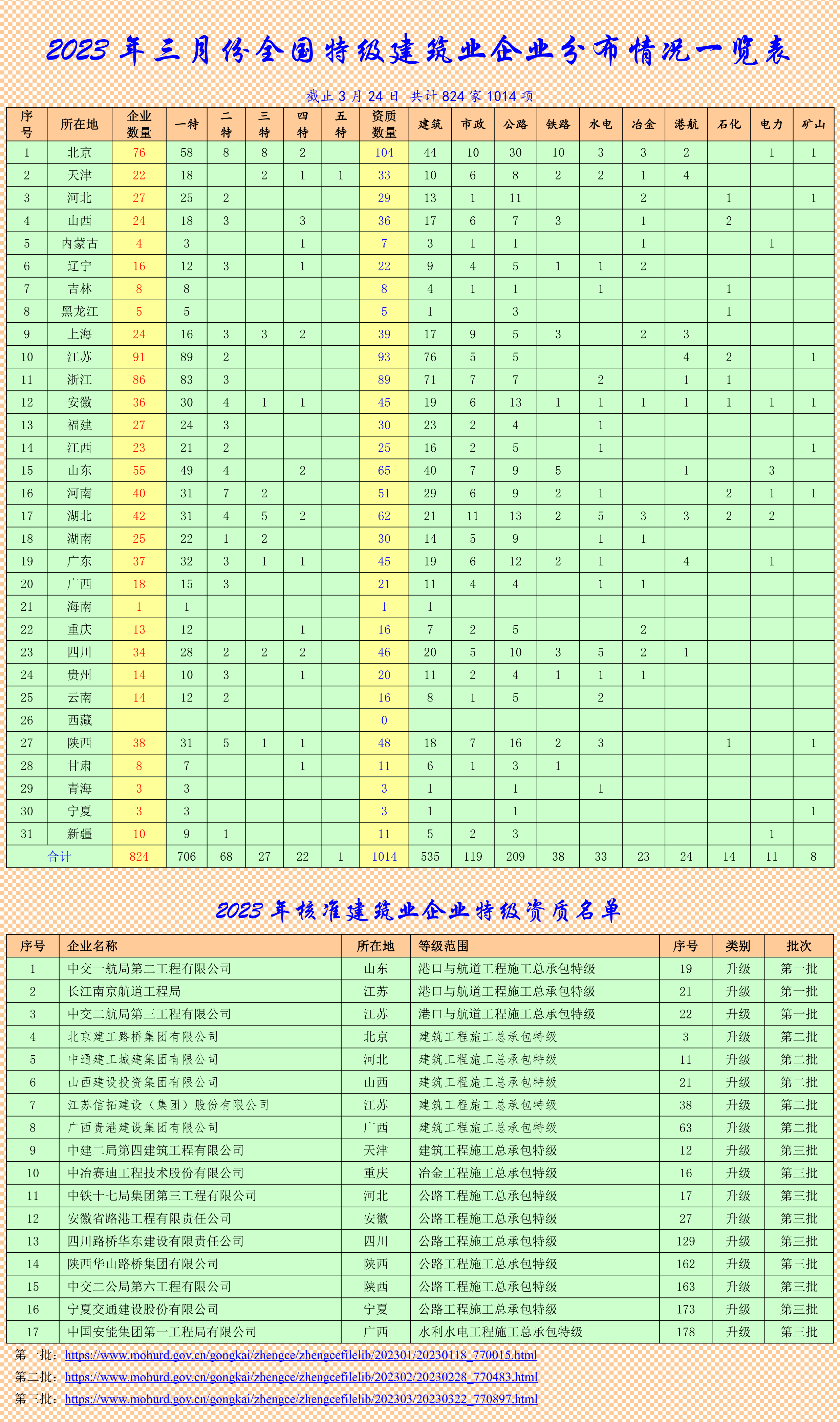 【學習園地】2023版全國特級資質建筑業企業名單(第三批)