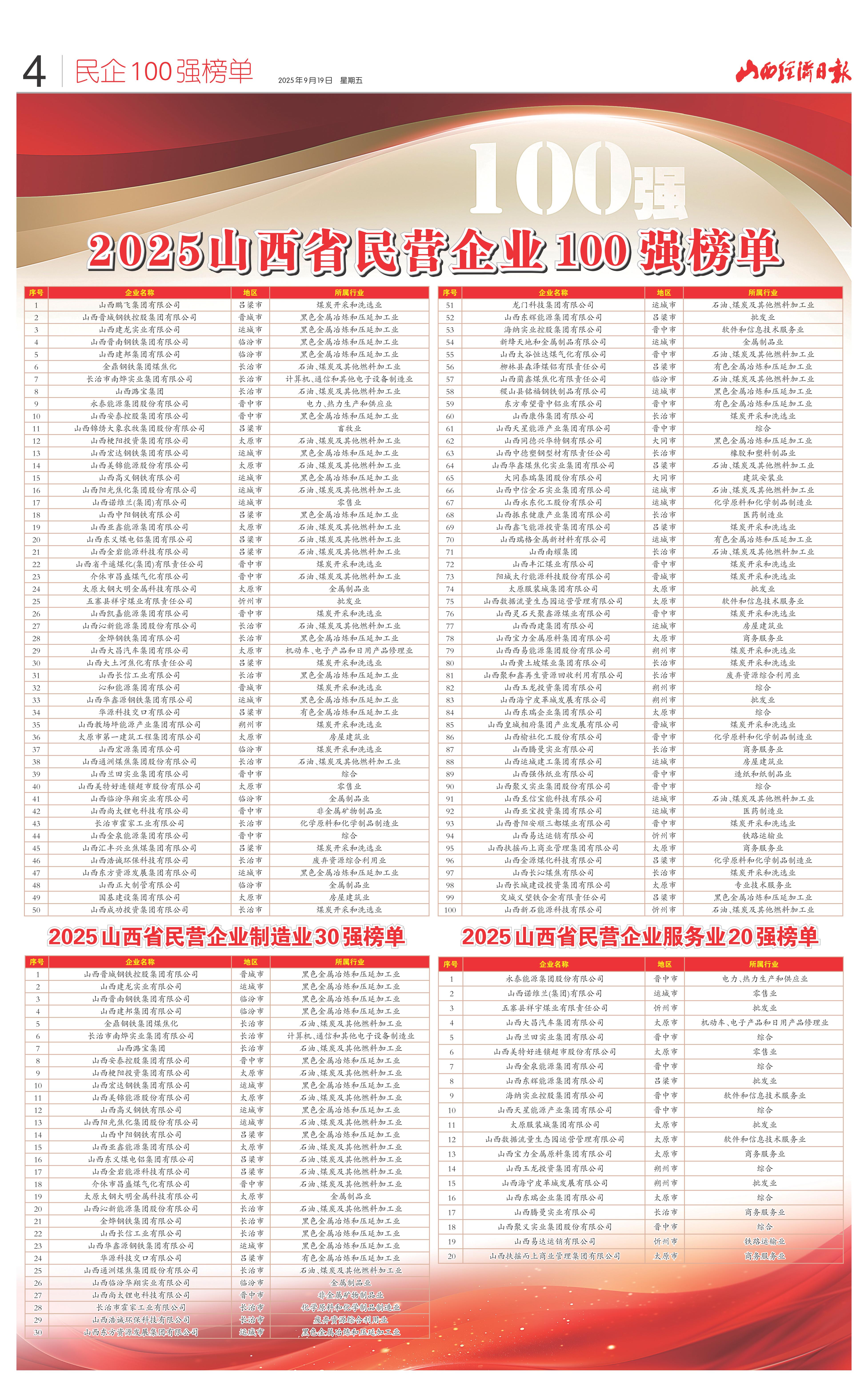 2025山西省民營企業(yè)服務業(yè)20強榜單