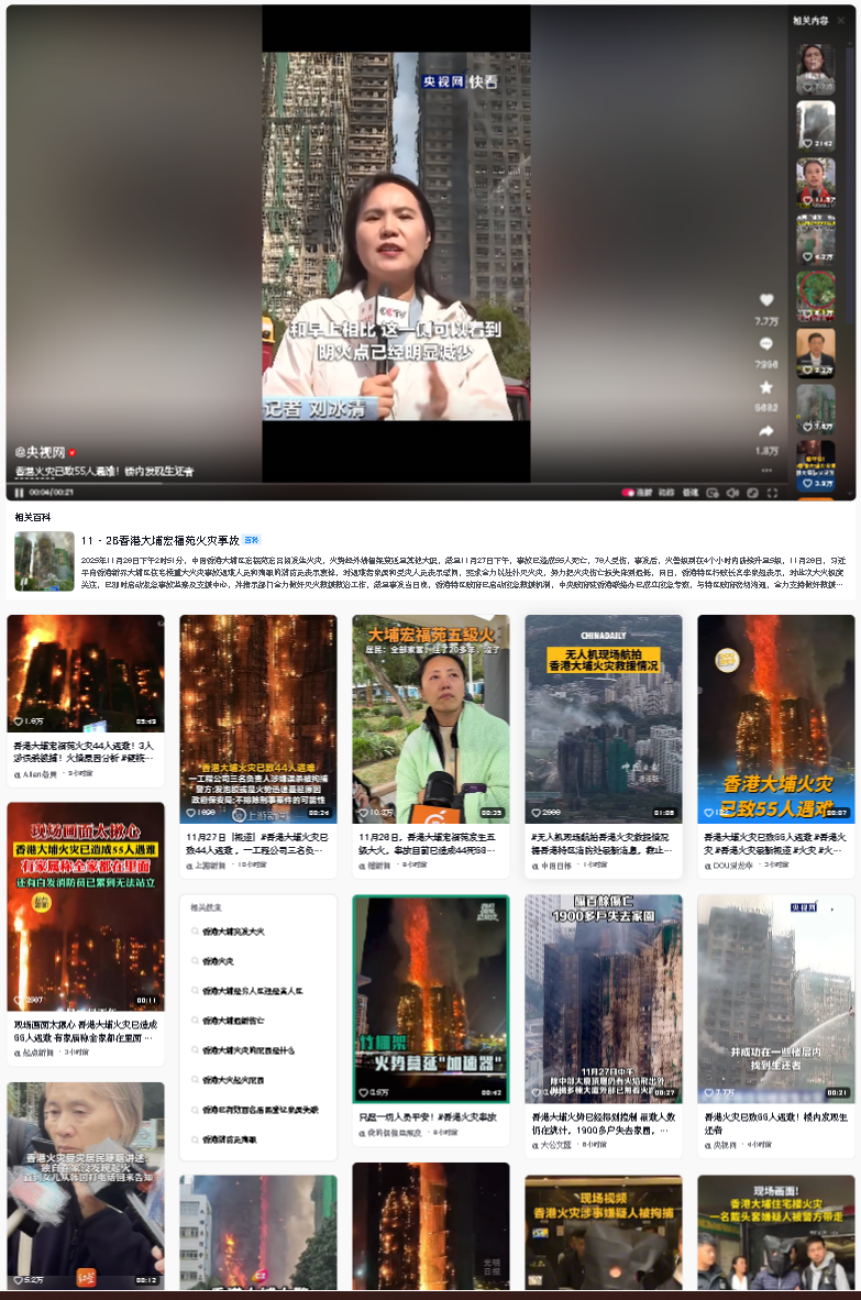 2025年11月26日下午2時(shí)51分,中國(guó)香港大埔區(qū)宏福苑宏昌閣發(fā)生火災(zāi),火勢(shì)經(jīng)外墻棚架蔓延至其他大廈。截至11月27日下午,事故已造成55人死亡,76人受傷。