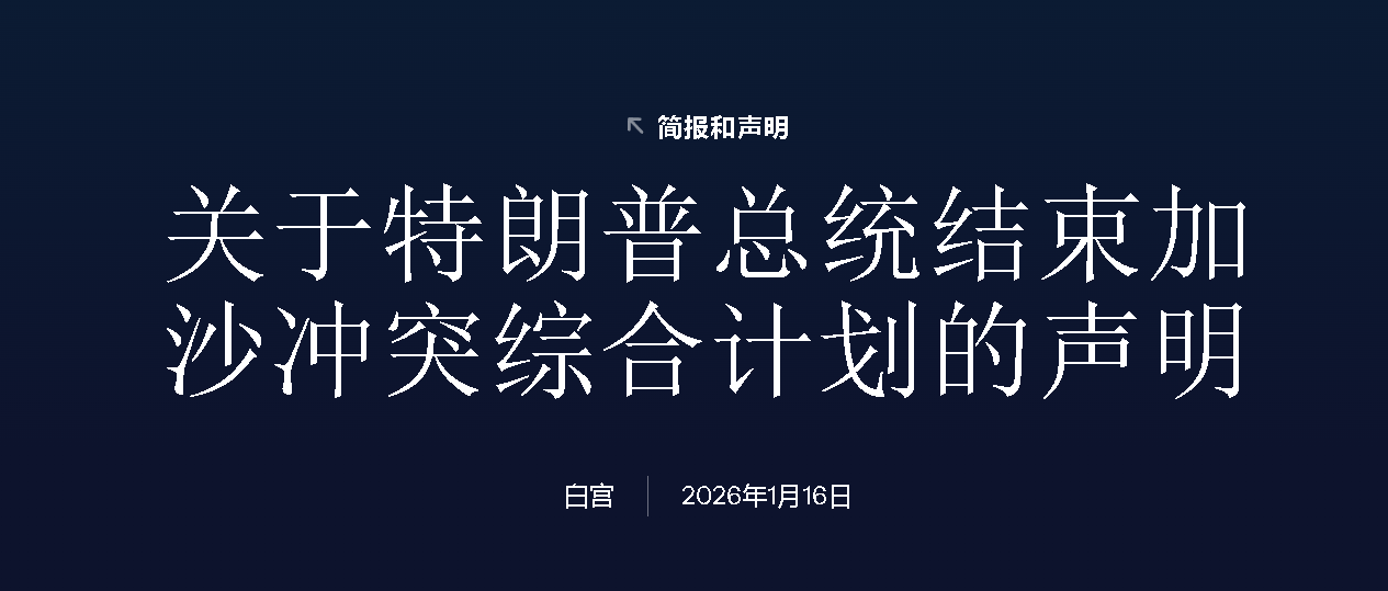 美國將繼續全力支持這一過渡框架,與以色列、關鍵阿拉伯國家和國際社會密切合作,實現《綜合計劃》的目標。總統呼吁所有各方與國家檢查和指導委員會(NCAG)、和平委員會和國際穩定部隊充分合作,以確保《綜合計劃》的迅速和成功實施。