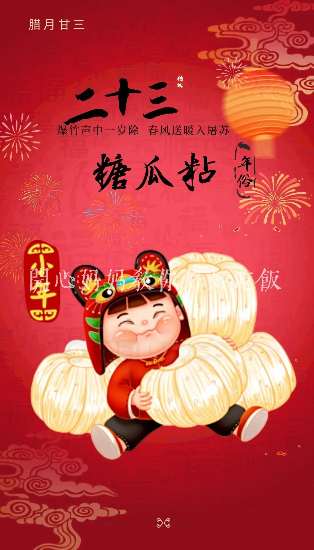 中國傳統(tǒng)習(xí)俗,臘月廿三是小年。這一天是灶王爺上天的日子,家家戶戶要掃除一年的積穢,擺香臺供奉灶神一家之主:上天言好事,回宮降吉祥!