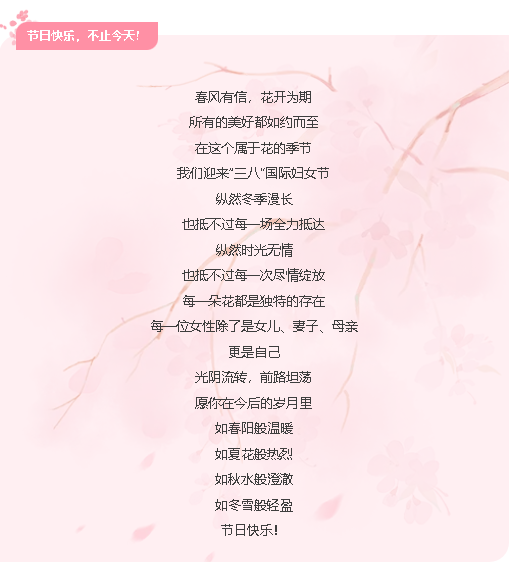 祝福偉大的、光榮的、勤勞的、勇敢的、智慧的——全國婦女節(jié)日快樂,闔家幸福,身體健康,萬事如意,成就更大的奇跡!
