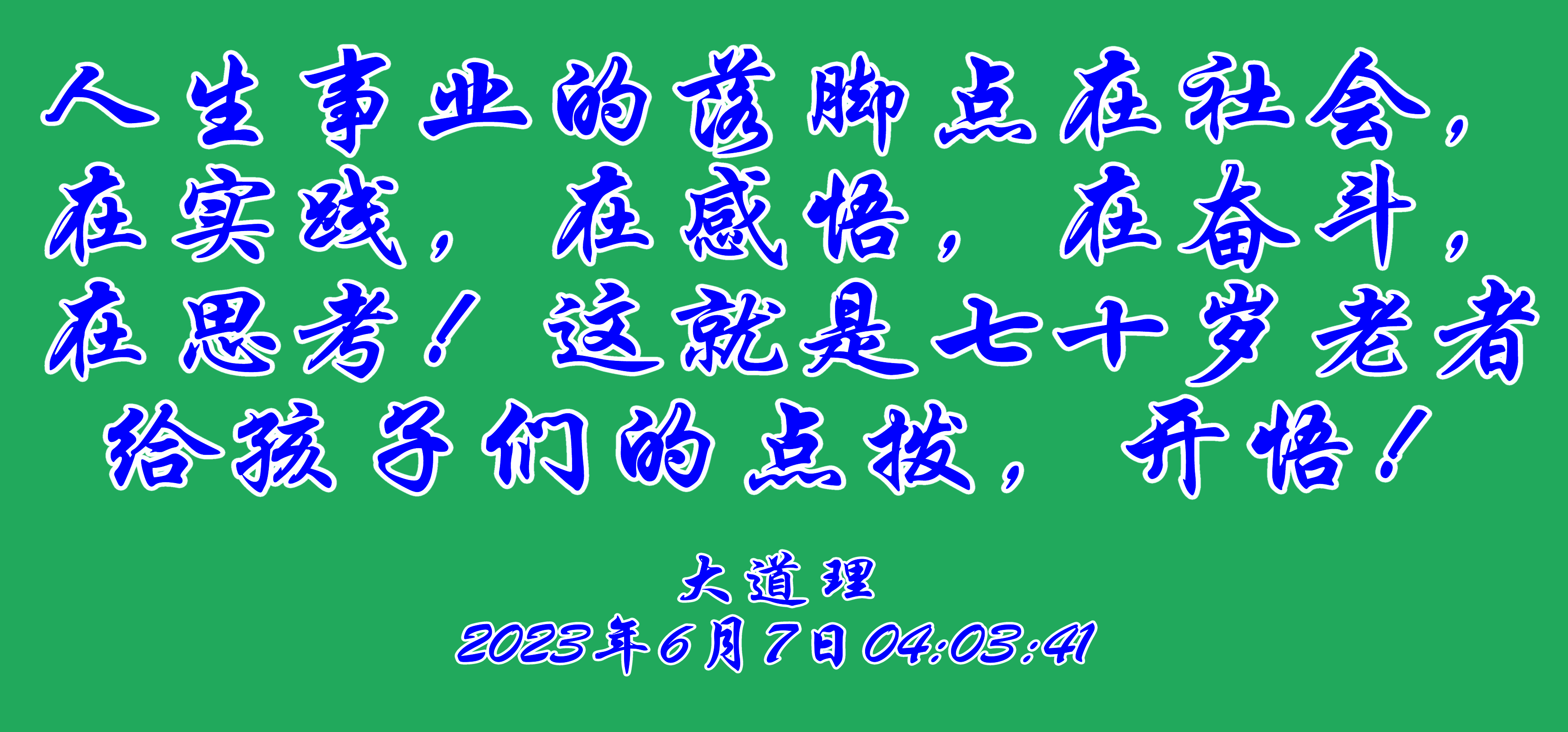 人生事業(yè)的落腳點(diǎn)在社會,在實(shí)踐,在感悟,在奮斗,在思考!這就是七十歲老者給孩子們的點(diǎn)撥,開悟!