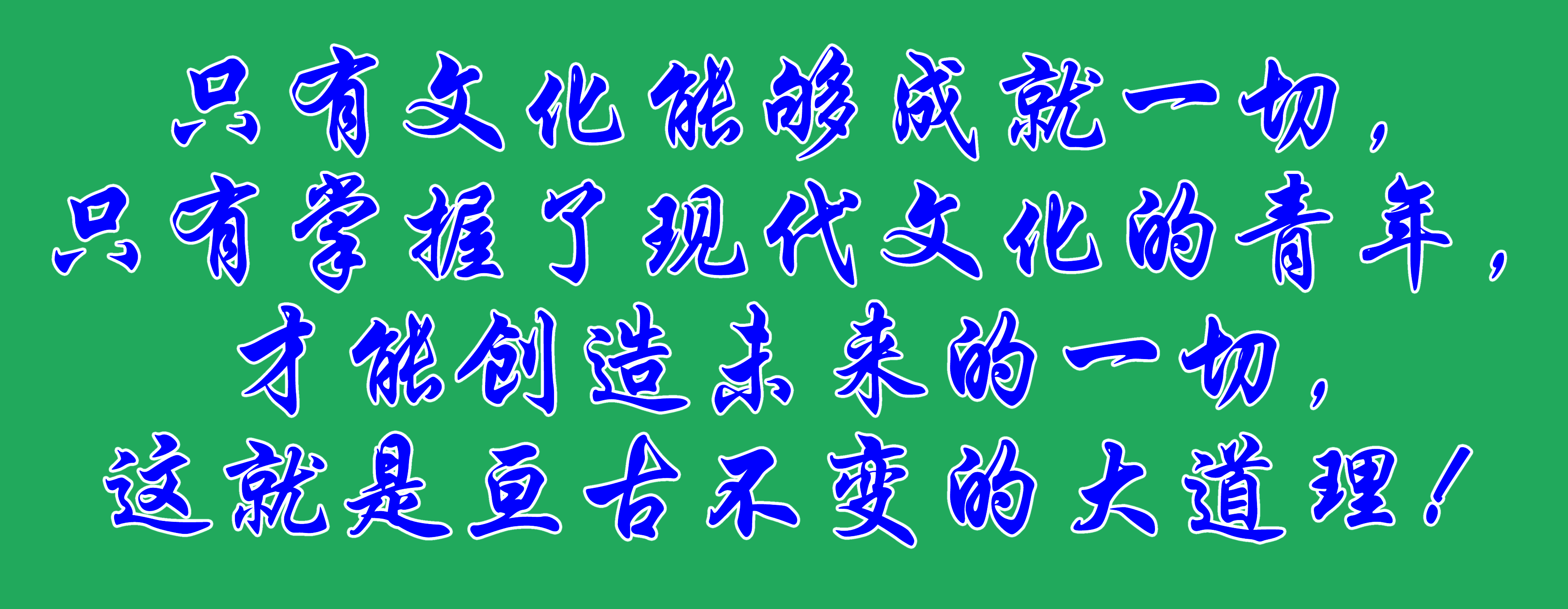 只有文化能夠成就一切,只有掌握了現(xiàn)代文化的青年,才能創(chuàng)造未來(lái)的一切,這就是亙古不變的大道理!