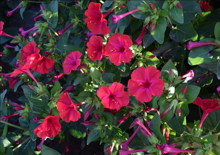 它的學名叫紫茉莉,過去太原地區老人們叫它送閨女花,后來人們也叫它地雷花,可能是緣于它的種子黑黝黝像個小地雷吧!