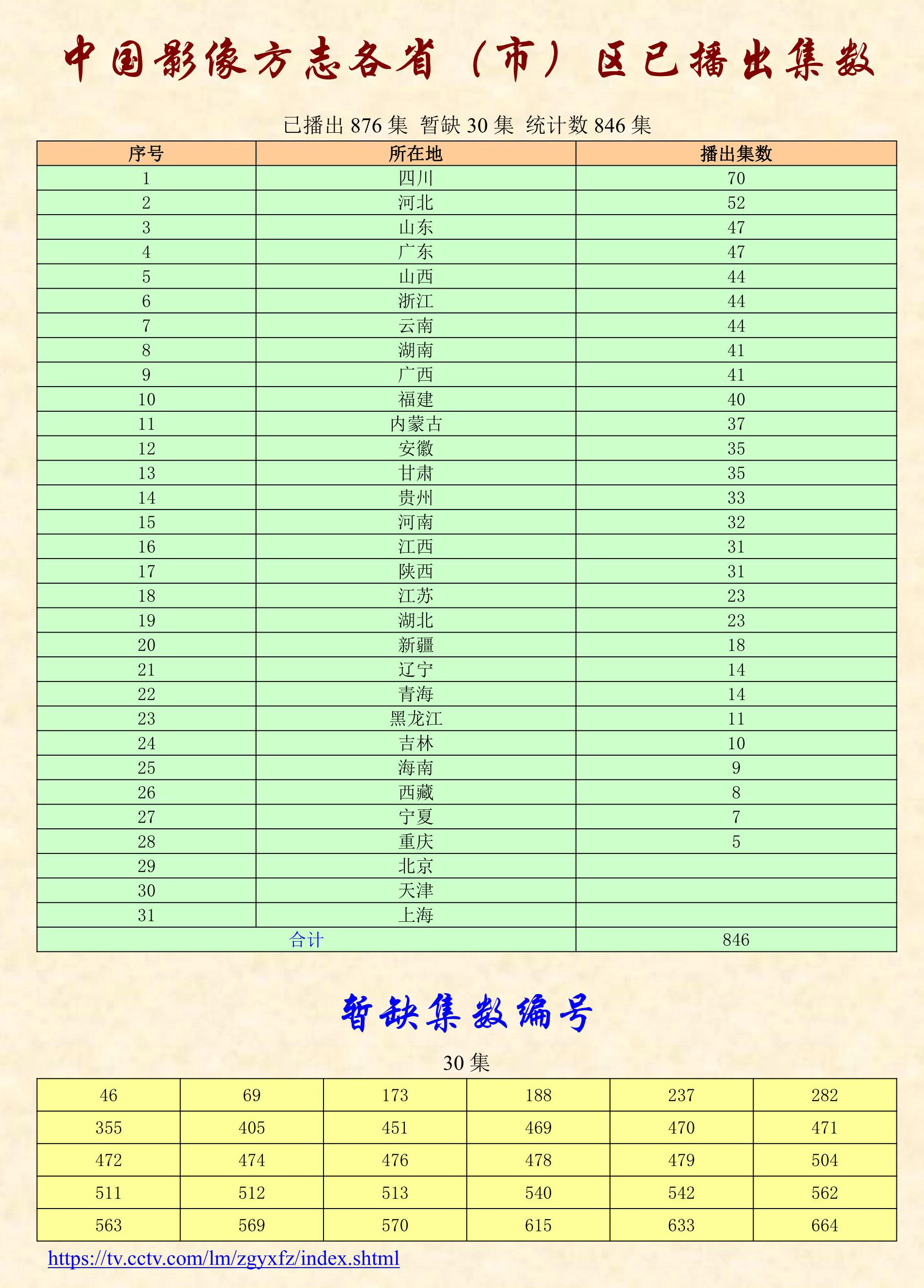 序號 山西省已播出縣名稱 第集