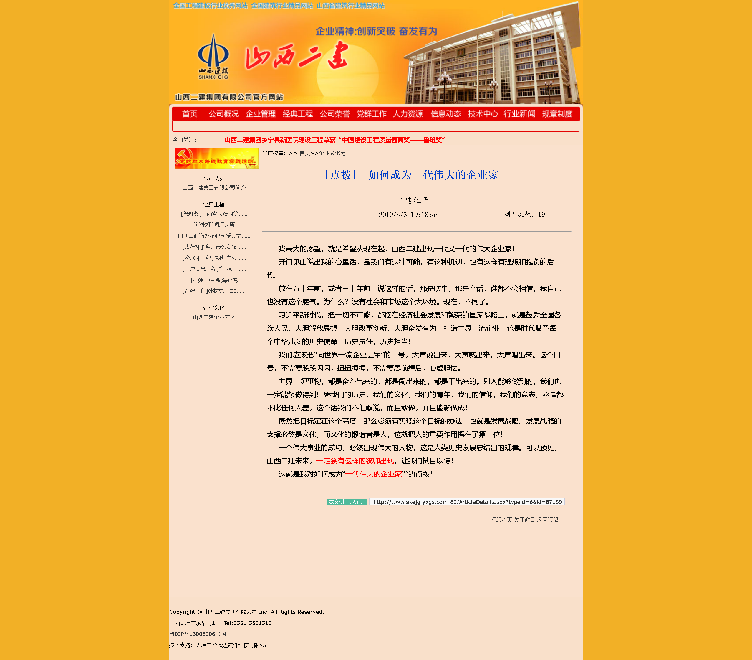 一個(gè)偉大事業(yè)的成功,必然出現(xiàn)偉大的人物,這是人類歷史的規(guī)律。可以預(yù)見,山西二建未來,一定會(huì)有這樣的統(tǒng)帥出現(xiàn),讓我們拭目以待!