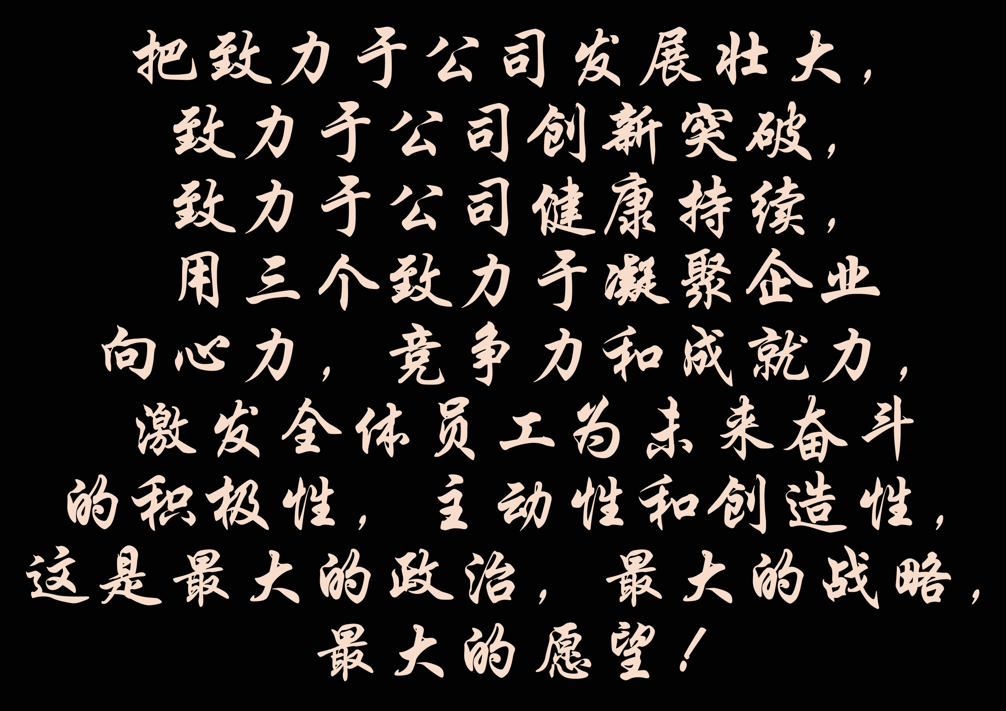今年華恒遠網站元旦上線以來,200天的時間,就是緊緊圍繞企業發展壯大這個大局開展工作,把致力于公司發展壯大,致力于公司創新突破,致力于公司健康持續,用三個致力于凝聚企業向心力,競爭力和成就力,激發全體員工為未來奮斗的積極性,主動性和創造性,這是最大的政治,最大的戰略,最大的愿望!