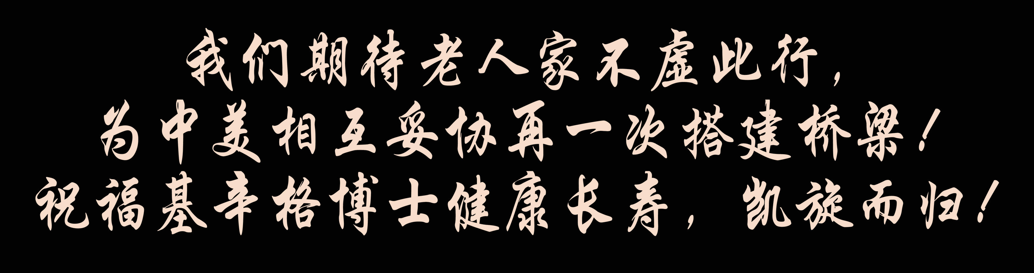 這位老壽星此次來中國,擔負著上天賦予他的使命和任務,那就是中美兩個決定人類未來的東西方神圣,不能再繼續相互指責,互相斗爭,相互受傷,彼此不容了!作為和事老,我們期待老人家不虛此行,為中美相互妥協再一次搭建橋梁!