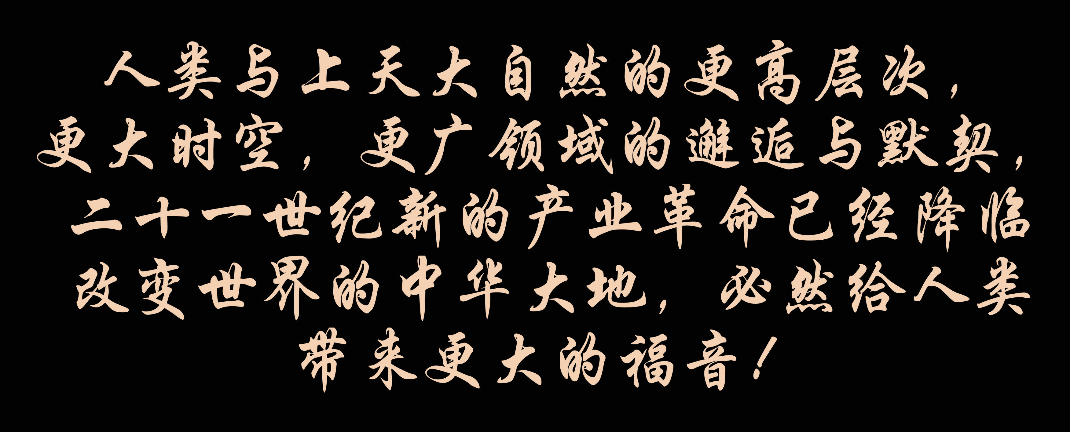 所有這一切,都是人類與上天大自然的更高層次,更大時(shí)空,更廣領(lǐng)域的邂逅與默契,二十一世紀(jì)新的產(chǎn)業(yè)革命已經(jīng)降臨改變世界的中華大地,必然給人類帶來更大的福音!