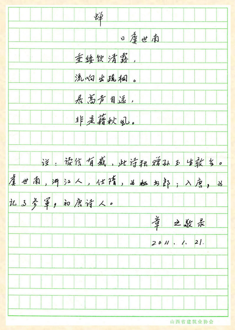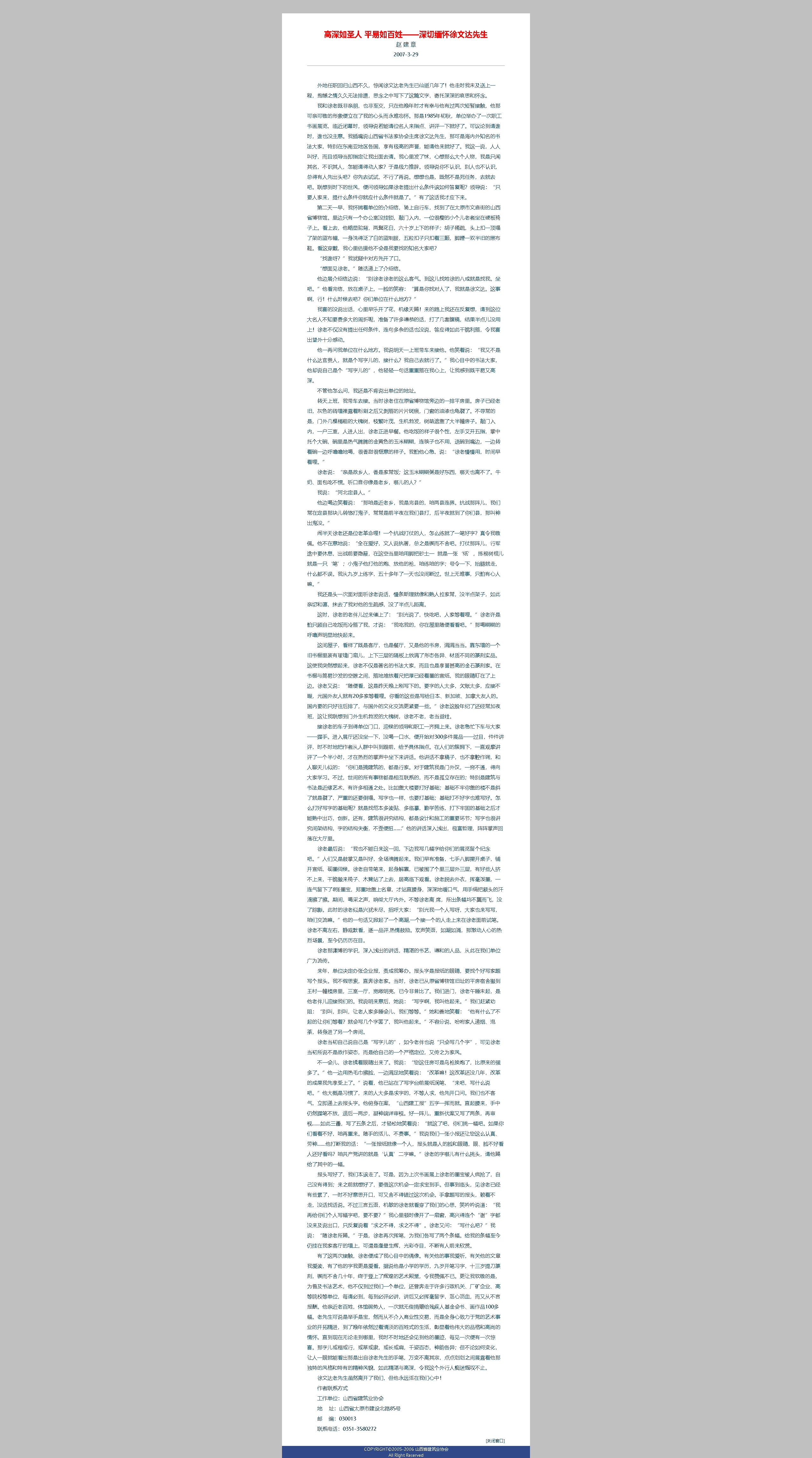 他叫趙建章,章之是他的筆名。1935年生人,河北定洲人,原省建一公司辦公室高級文秘,省建總公司駐北京辦事處主任,建筑業(yè)協(xié)會會刊編輯部負(fù)責(zé)人。