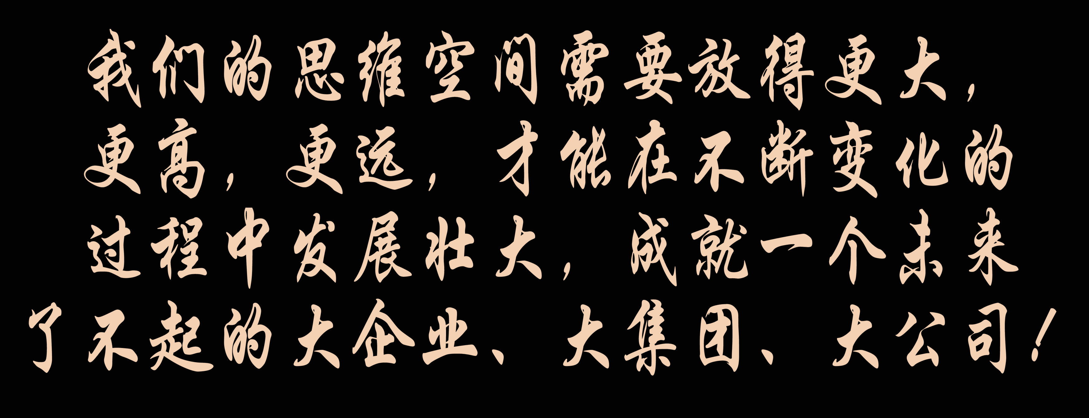 因此,我們的思維空間需要放得更大,更高,更遠,才能在不斷變化的過程中發展壯大,成就一個未來了不起的大企業、大集團、大公司!