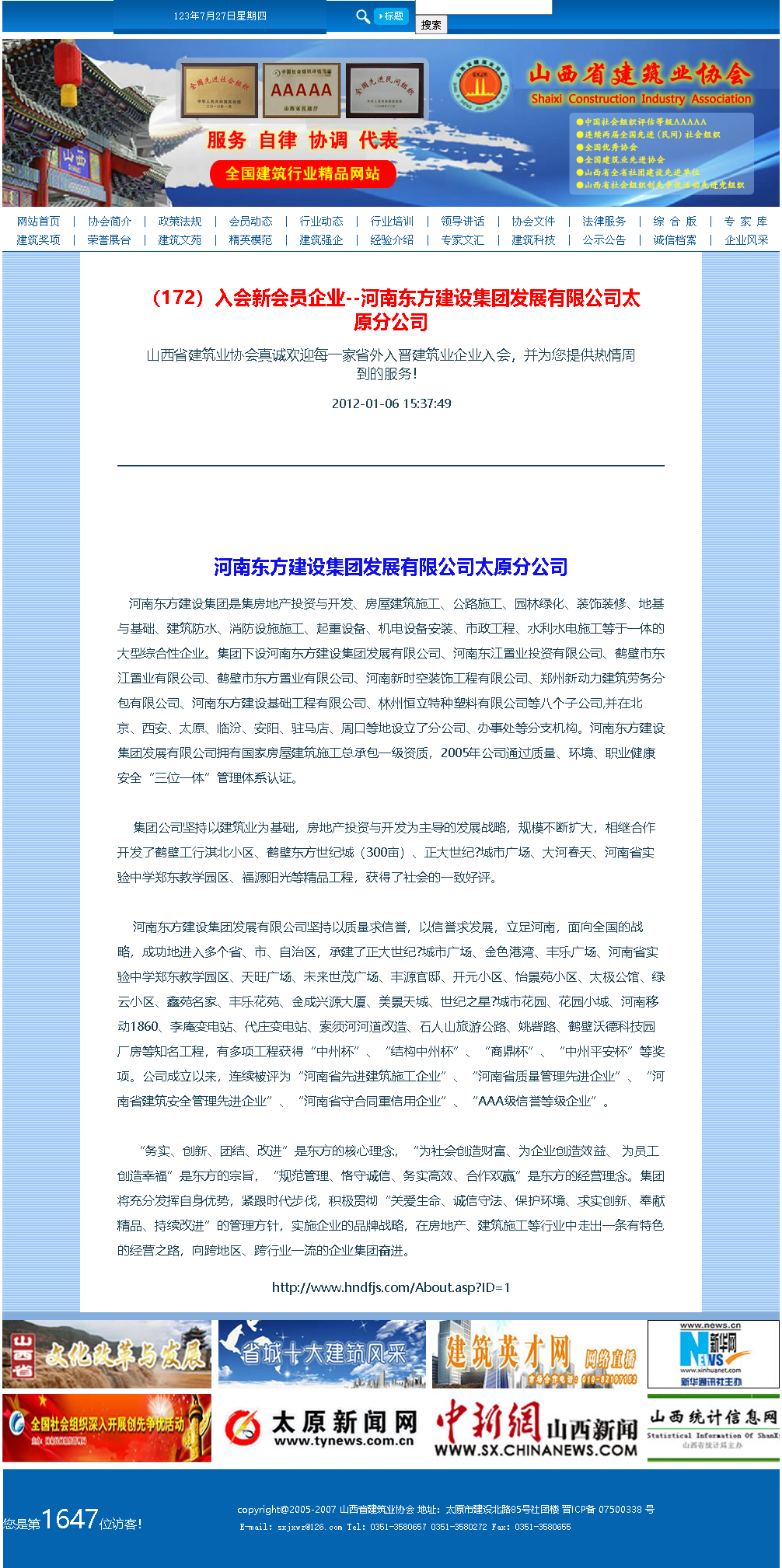 37. 浙江省東陽市江南建設有限公司山西分公司