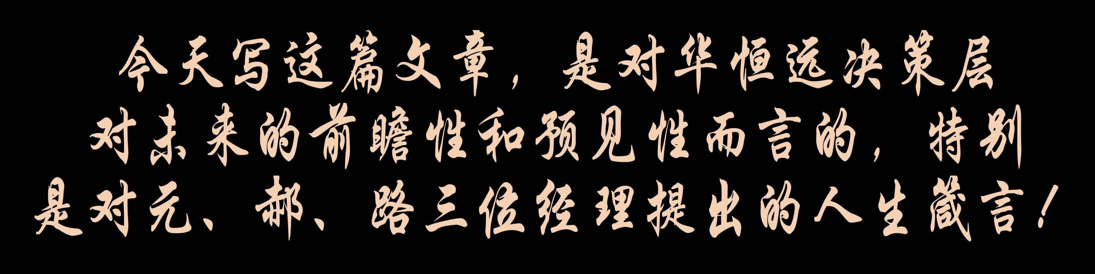 今天寫這篇文章,是對華恒遠決策層對未來的前瞻性和預見性而言的,特別是對元、郝、路三位經理提出的人生箴言!