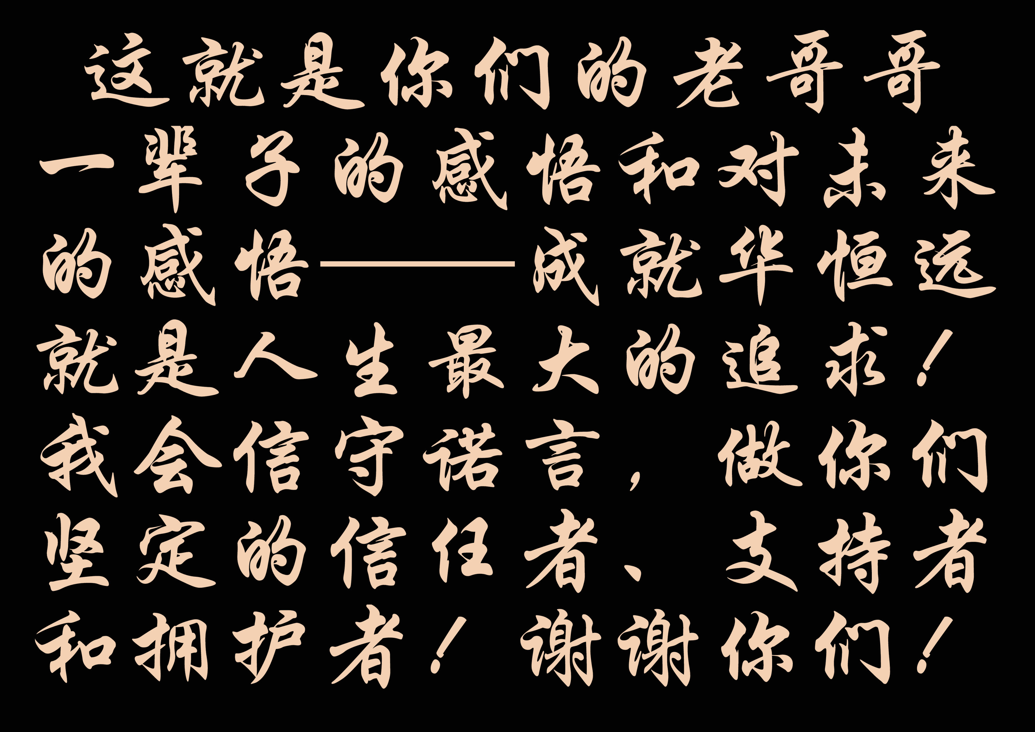 這就是你們的老哥哥一輩子的感悟和對未來的感悟——成就華恒遠就是人生最大的追求!
