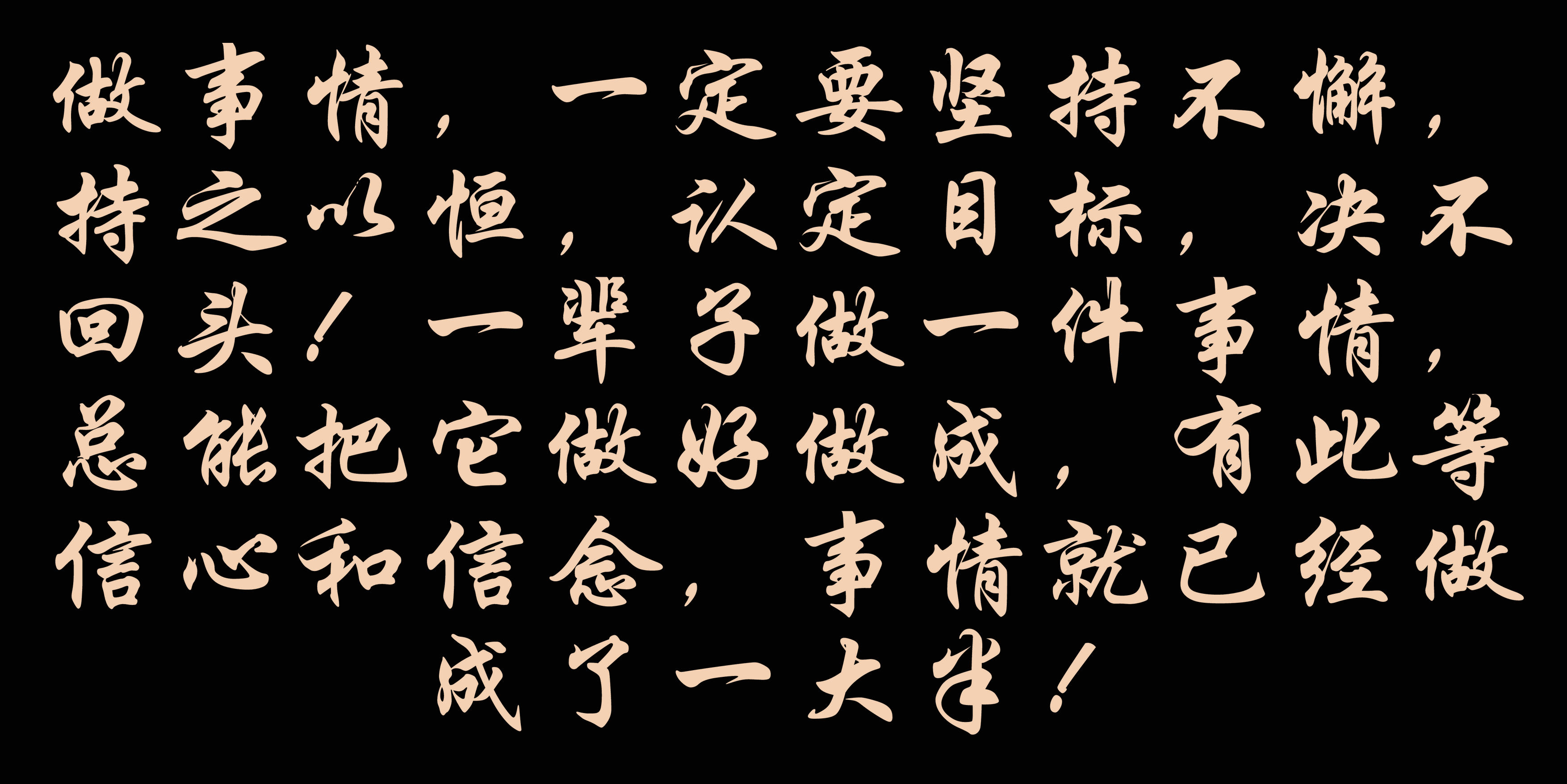 做事情,一定要堅持不懈,持之以恒,認(rèn)定目標(biāo),決不回頭!一輩子做一件事情,總能把它做好做成,有此等信心和信念,事情就已經(jīng)做成了一大半!
