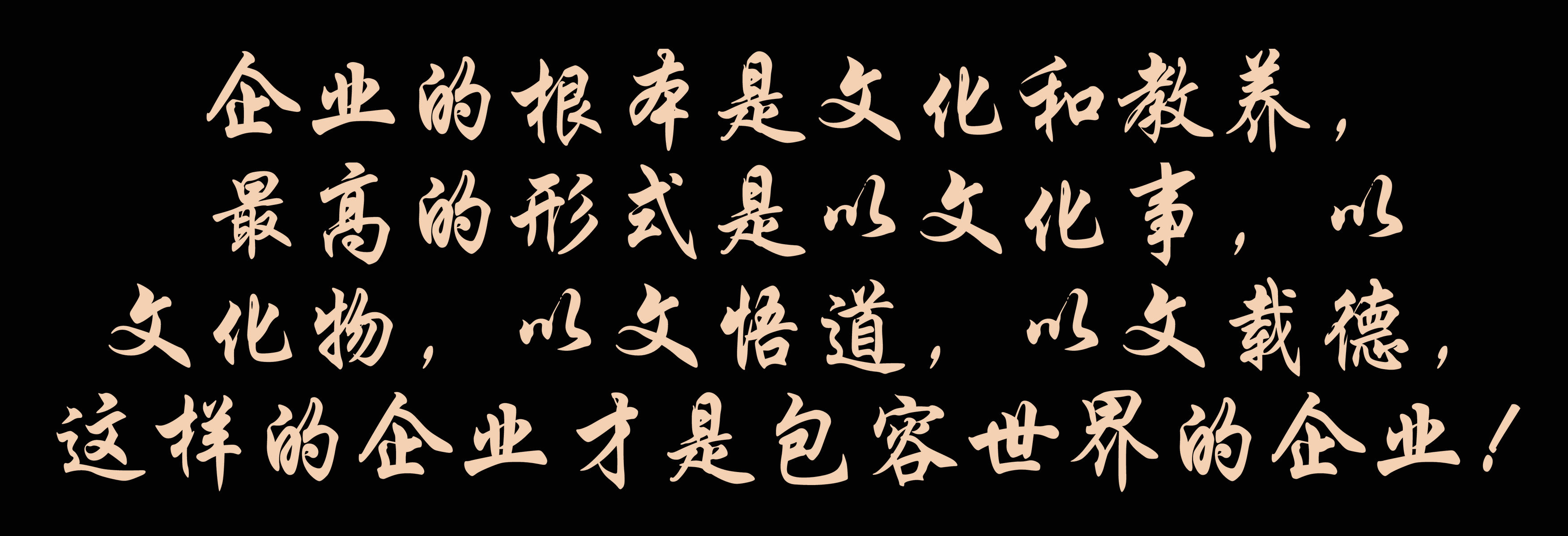 做企業盈利固然重要,而利潤并不是追求的最終目標,企業的根本是文化和教養,最高的形式是以文化事,以文化物,以文悟道,以文載德,這樣的企業才是包容世界的企業!看不了三十年那就不是大道理!