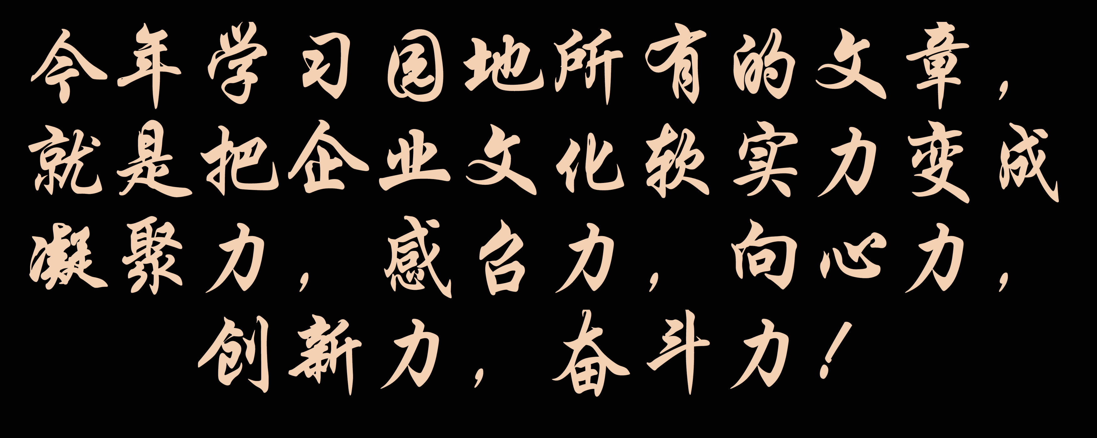 今年學習園地所有的文章,就是把企業(yè)文化軟實力變成凝聚力,感召力,向心力,創(chuàng)新力,奮斗力!