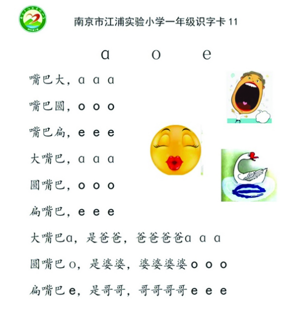 南京市江浦實驗小學語文老師夏光清表示,單韻母發音,口形不能變。“我會要求學生發音時,從頭到尾口形都是圓的。如果發‘窩’音,嘴巴先發‘w’音,一開始嘴巴是撅著的,然后變成圓的,前后是變化的。”