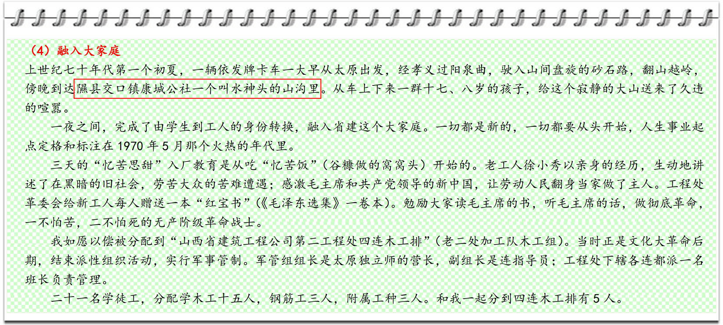 水神頭不是一個村莊,只是因這眼清澈見底的泉水而得名。而山西三線建設選址在這里的山西前進機器廠,正是看中了這眼泉水。如果不是這樣,水神頭也不會遭這個難!現在看來,有一利就有一弊,是千真萬確的真理!