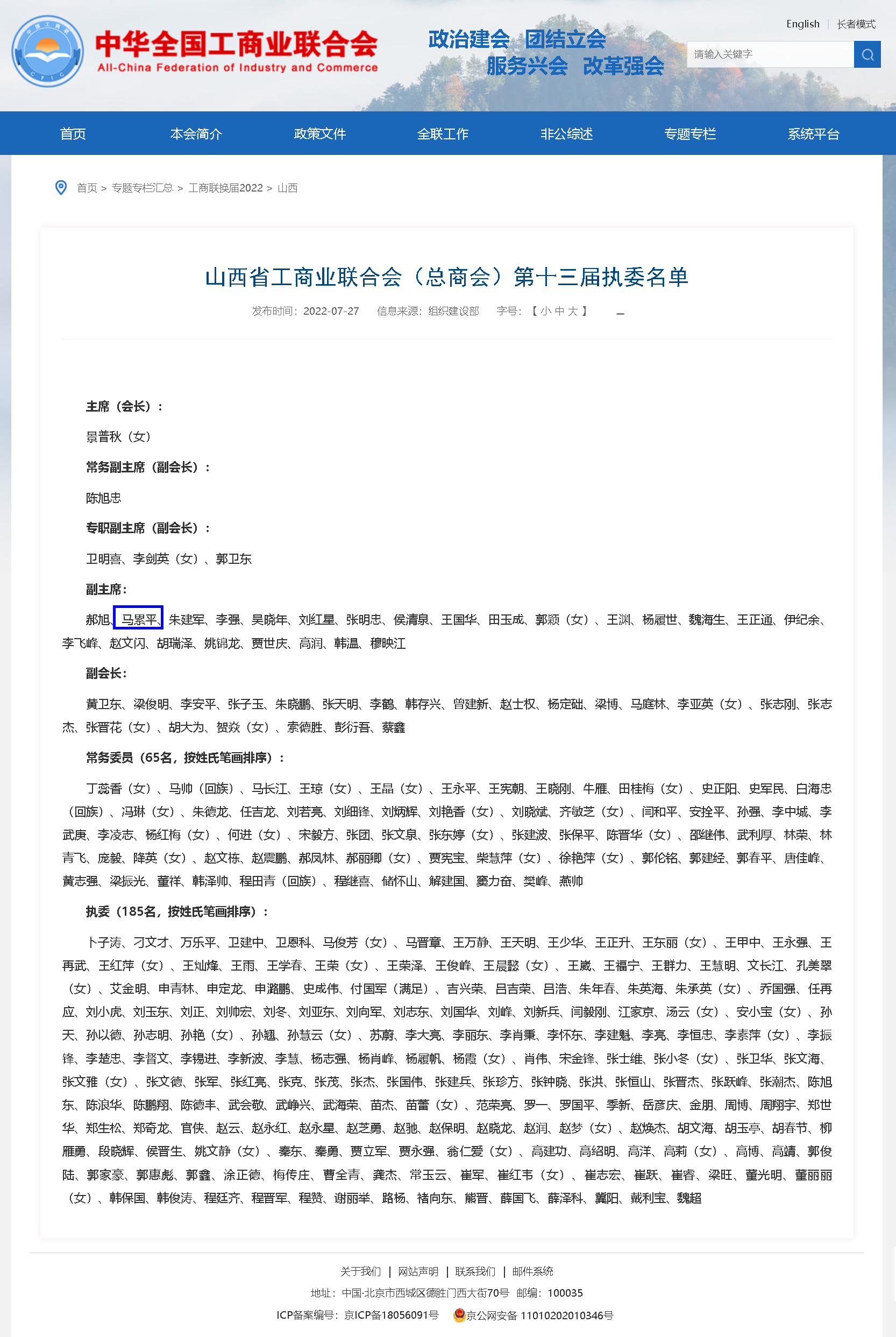 2022年7月——第十三屆山西省政協委員、提案委員會委員